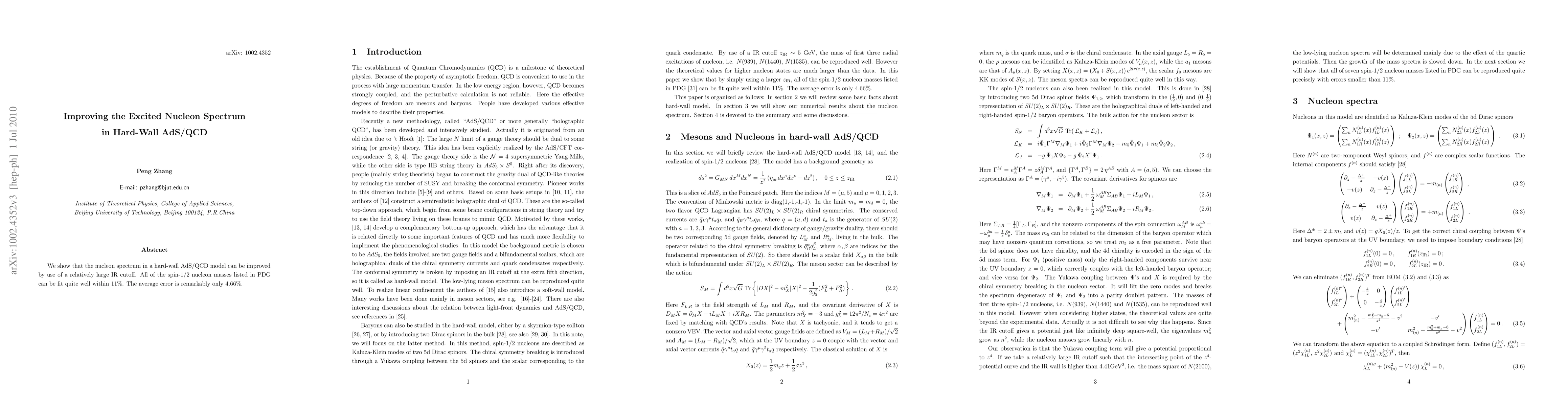 We show that the nucleon spectrum in a hard-wall AdS/QCD model can be improved by use of a relatively large IR cutoff. All of the spin-1/2 nucleon masses listed in PDG can be fit quite well within 11%. The average error is remarkably only 4.66%.