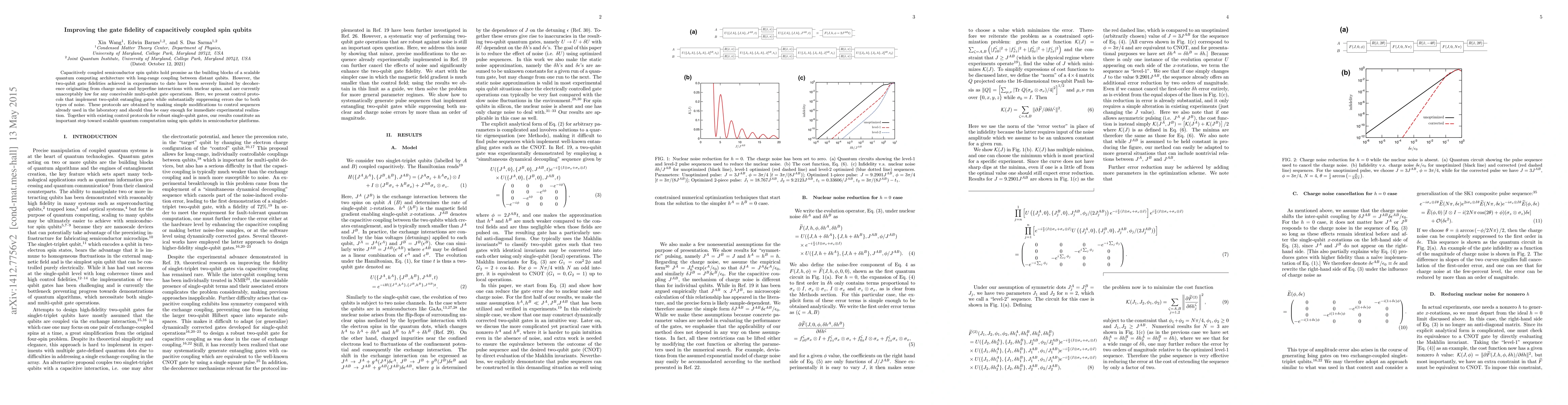 This paper proposes control protocols to enhance the fidelity of two-qubit gates in capacitively coupled semiconductor spin qubits, addressing decoherence from charge noise and nuclear spin interactions. These protocols, achievable through minor adjustments to existing control sequences, represent a significant advancement towards scalable quantum computing with spin qubits.
