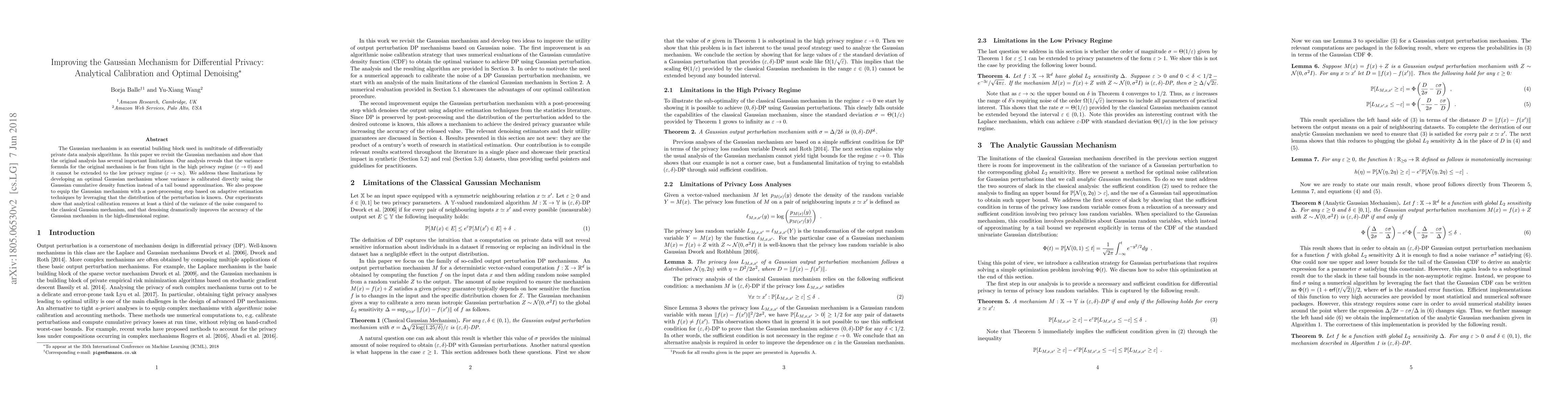 This paper improves the Gaussian mechanism for differential privacy by recalibrating its variance using the Gaussian cumulative density function instead of approximations, and introduces a denoising step to enhance accuracy. Experimental results show significant variance reduction and improved accuracy, especially in high-dimensional settings.