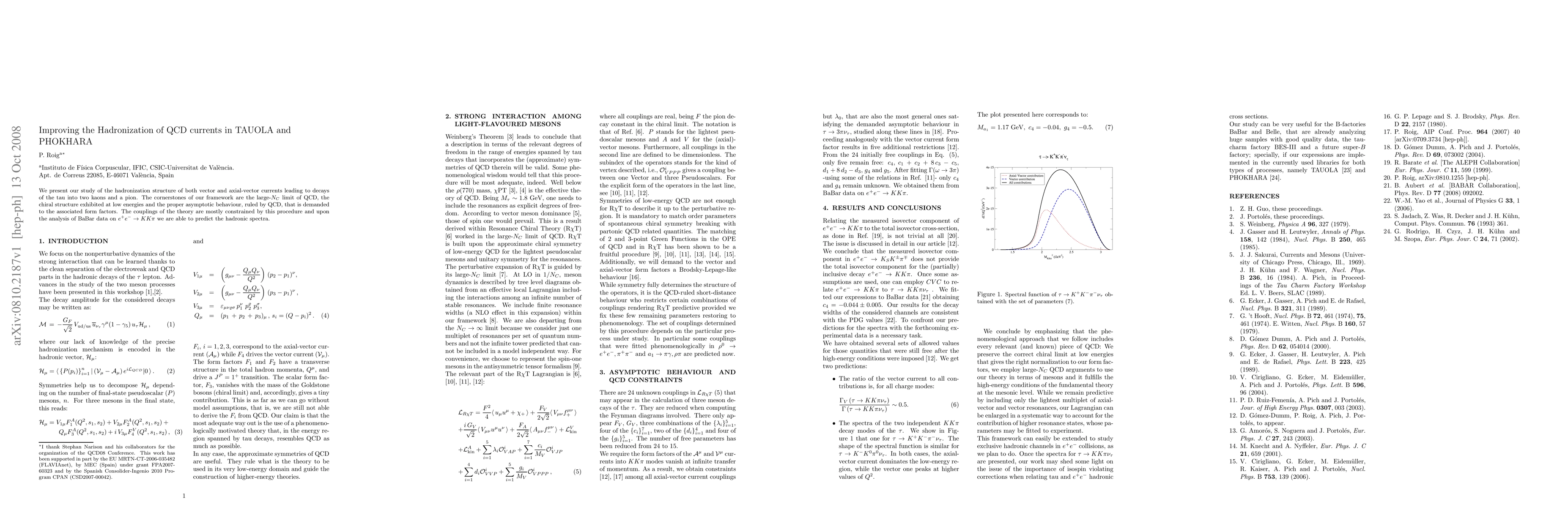 We present our study of the hadronization structure of both vector and axial-vector currents leading to decays of the tau into two kaons and a pion. The cornerstones of our framework are the large-N_C limit of QCD, the chiral structure exhibited at low energies and the proper asymptotic behaviour, ruled by QCD, that is demanded to the associated form factors. The couplings of the theory are mostly constrained by this procedure and upon the analysis of BaBar data on e^+e^- -> KK pi we are able to predict the hadronic spectra.