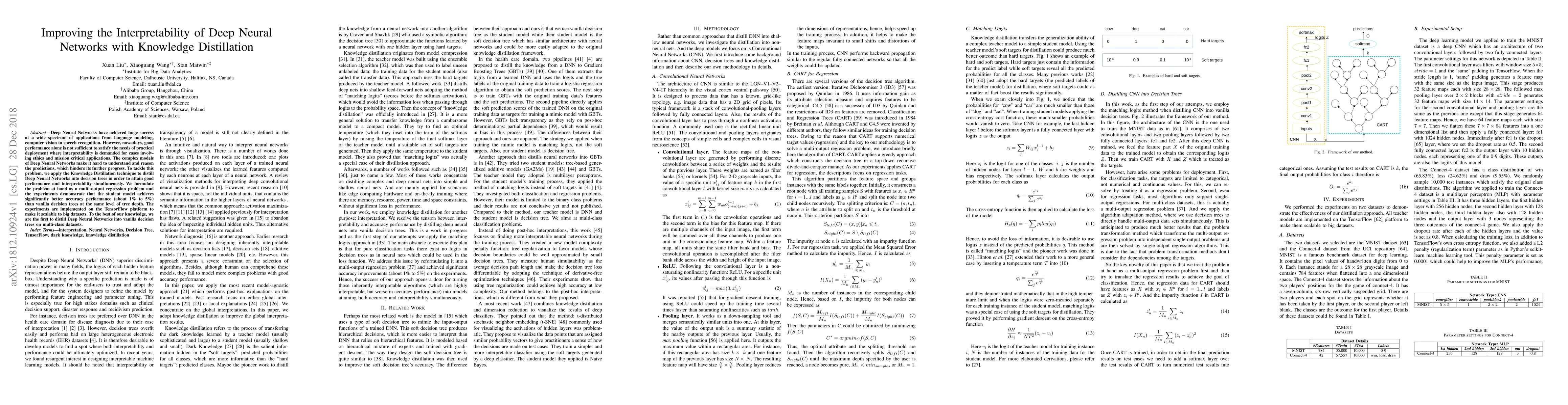This paper proposes using Knowledge Distillation to transform Deep Neural Networks into interpretable decision trees while maintaining performance. Experiments show that the distilled student models achieve better accuracy than vanilla decision trees.