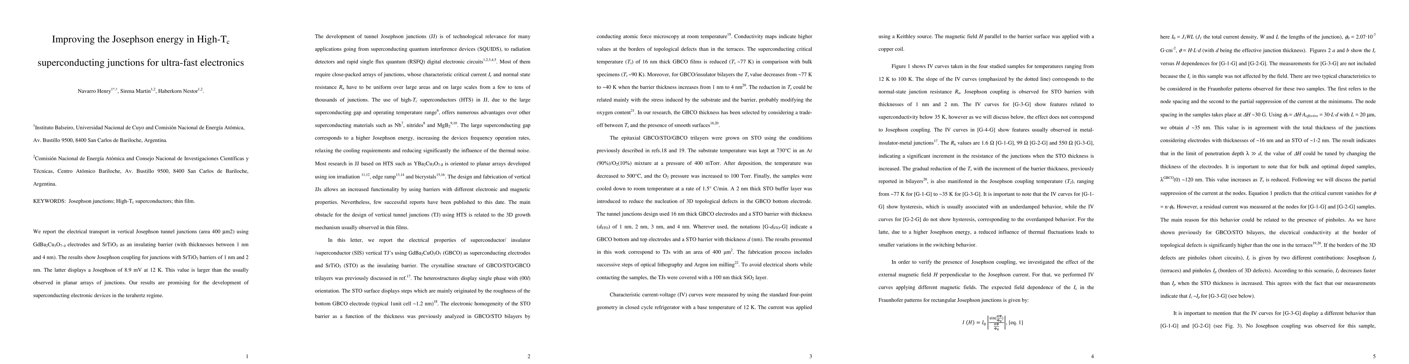This study investigates vertical Josephson tunnel junctions with GdBa$_2$Cu$_3$O$_7$$_{-\delta}$ electrodes and SrTiO$_3$ barriers, achieving enhanced Josephson coupling with a record-high Josephson energy of 8.9 mV at 12 K for 2 nm barriers. These findings suggest potential for ultra-fast superconducting electronics in the terahertz regime.