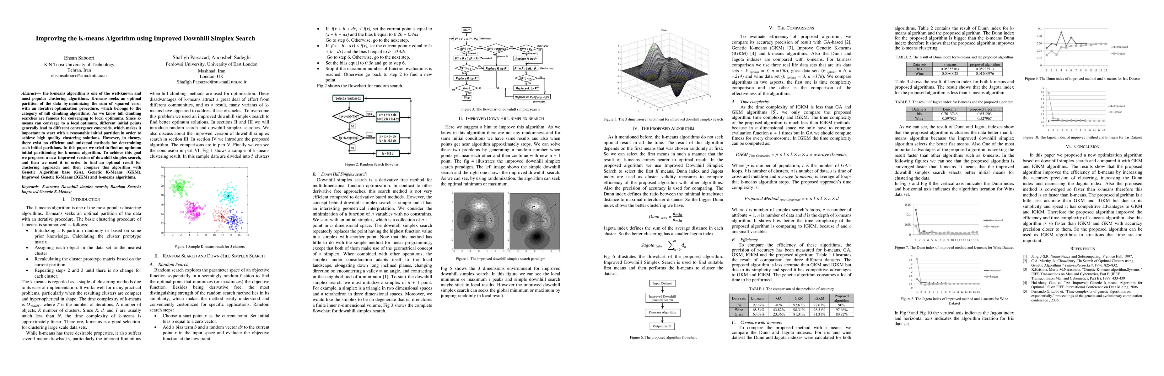 This paper proposes an improved version of the downhill simplex search to optimize the initial partitioning in the k-means algorithm, aiming to enhance clustering quality by avoiding local optima. The new method is compared against Genetic Algorithm-based, Genetic K-Means, and Improved Genetic K-Means approaches, alongside the standard k-means algorithm.