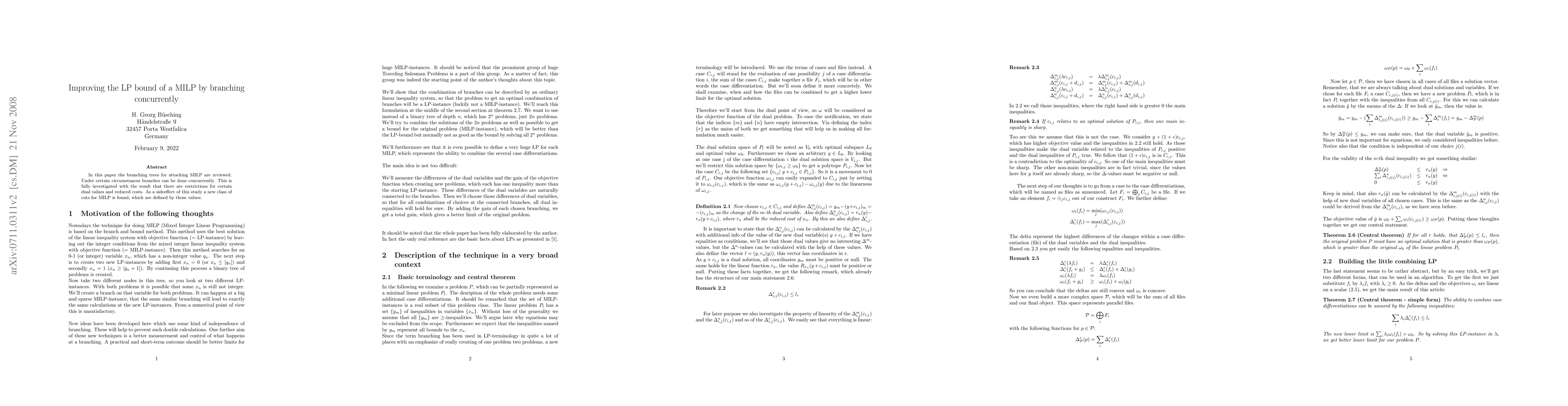 We'll measure the differences of the dual variables and the gain of the objective function when creating new problems, which each has one inequality more than the starting LP-instance. These differences of the dual variables are naturally connected to the branches. Then we'll choose those differences of dual variables, so that for all combinations of choices at the connected branches, all dual inequalities will hold for sure. By adding the gain of each chosen branching, we get a total gain, which gives a better limit of the original problem. By this technique it is also possible to create cuts.