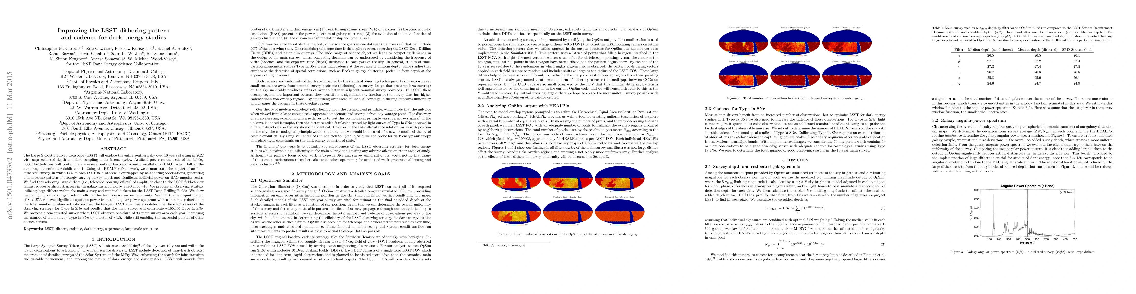 The Large Synoptic Survey Telescope (LSST) will explore the entire southern sky over 10 years starting in 2022 with unprecedented depth and time sampling in six filters, $ugrizy$. Artificial power on the scale of the 3.5 deg LSST field-of-view will contaminate measurements of baryonic acoustic oscillations (BAO), which fall at the same angular scale at redshift $z \sim 1$. Using the HEALPix framework, we demonstrate the impact of an "un-dithered" survey, in which $17\%$ of each LSST field-of-view is overlapped by neighboring observations, generating a honeycomb pattern of strongly varying survey depth and significant artificial power on BAO angular scales. We find that adopting large dithers (i.e., telescope pointing offsets) of amplitude close to the LSST field-of-view radius reduces artificial structure in the galaxy distribution by a factor of $\sim$10. We propose an observing strategy utilizing large dithers within the main survey and minimal dithers for the LSST Deep Drilling Fields. We show that applying various magnitude cutoffs can further increase survey uniformity. We find that a magnitude cut of $r < 27.3$ removes significant spurious power from the angular power spectrum with a minimal reduction in the total number of observed galaxies over the ten-year LSST run. We also determine the effectiveness of the observing strategy for Type Ia SNe and predict that the main survey will contribute $\sim$100,000 Type Ia SNe. We propose a concentrated survey where LSST observes one-third of its main survey area each year, increasing the number of main survey Type Ia SNe by a factor of $\sim$1.5, while still enabling the successful pursuit of other science drivers.