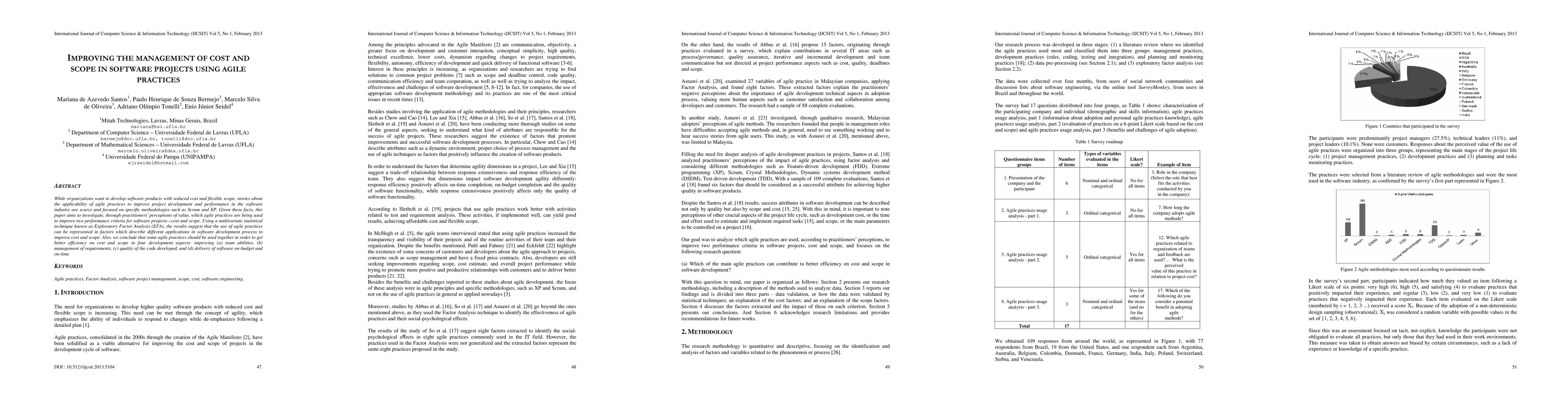 This paper explores agile practices' impact on software project cost and scope management, finding that certain practices, when combined, enhance team abilities, requirement management, code quality, and on-budget, on-time delivery. The study uses Exploratory Factor Analysis to identify these practices' effectiveness.