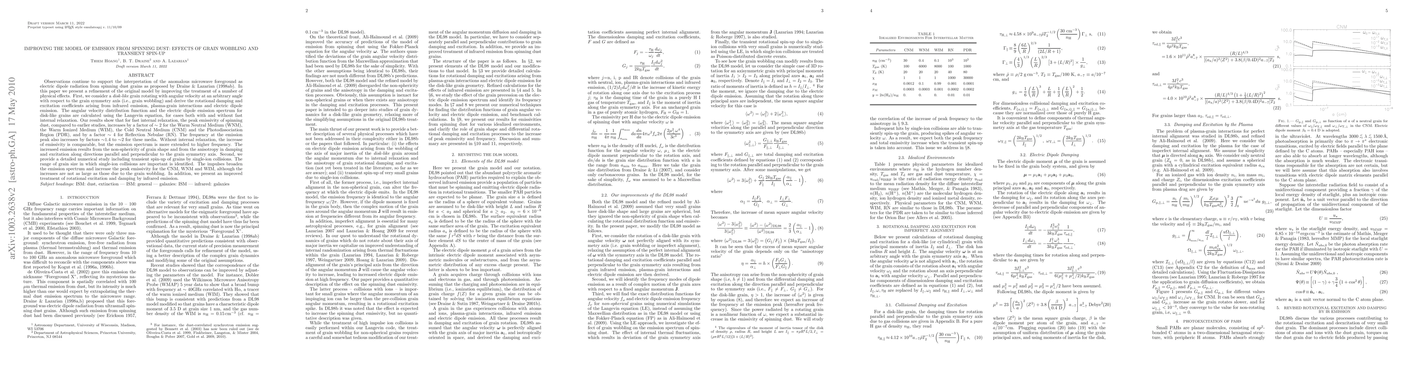 This paper refines the model of emission from spinning dust grains, considering grain wobbling and transient spin-up. It shows that peak emissivity increases by factors of ~2 to ~4 across various interstellar medium regions due to grain non-sphericity and anisotropy in damping/excitation, and includes a detailed study of transient spin-up effects from single-ion collisions.