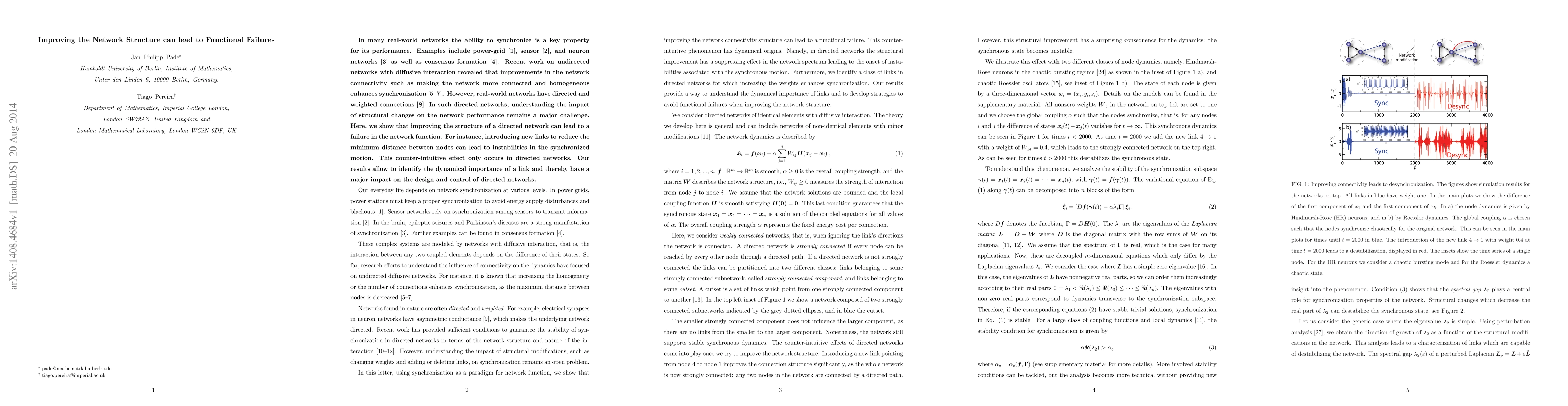 In many real-world networks the ability to synchronize is a key property for its performance. Examples include power-grid, sensor, and neuron networks as well as consensus formation. Recent work on undirected networks with diffusive interaction revealed that improvements in the network connectivity such as making the network more connected and homogeneous enhances synchronization. However, real-world networks have directed and weighted connections. In such directed networks, understanding the impact of structural changes on the network performance remains a major challenge. Here, we show that improving the structure of a directed network can lead to a failure in the network function. For instance, introducing new links to reduce the minimum distance between nodes can lead to instabilities in the synchronized motion. This counter-intuitive effect only occurs in directed networks. Our results allow to identify the dynamical importance of a link and thereby have a major impact on the design and control of directed networks.