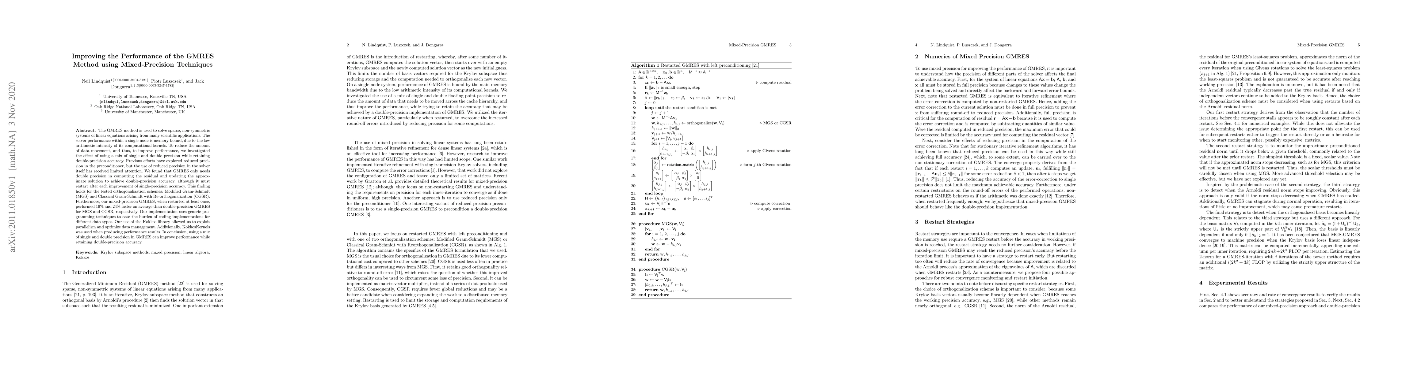 Researchers found that mixing single and double precision in GMRES can improve performance while maintaining double-precision accuracy, leading to 19% and 24% speedups on average.