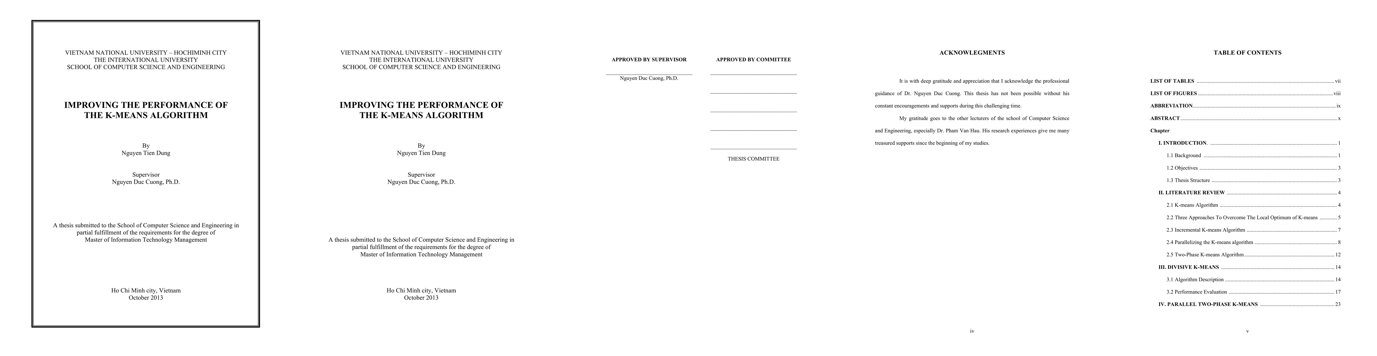 The Incremental K-means (IKM), an improved version of K-means (KM), was introduced to improve the clustering quality of KM significantly. However, the speed of IKM is slower than KM. My thesis proposes two algorithms to speed up IKM while remaining the quality of its clustering result approximately. The first algorithm, called Divisive K-means, improves the speed of IKM by speeding up its splitting process of clusters. Testing with UCI Machine Learning data sets, the new algorithm achieves the empirically global optimum as IKM and has lower complexity, $O(k*log_{2}k*n)$, than IKM, $O(k^{2}n)$. The second algorithm, called Parallel Two-Phase K-means (Par2PK-means), parallelizes IKM by employing the model of Two-Phase K-means. Testing with large data sets, this algorithm attains a good speedup ratio, closing to the linearly speed-up ratio.