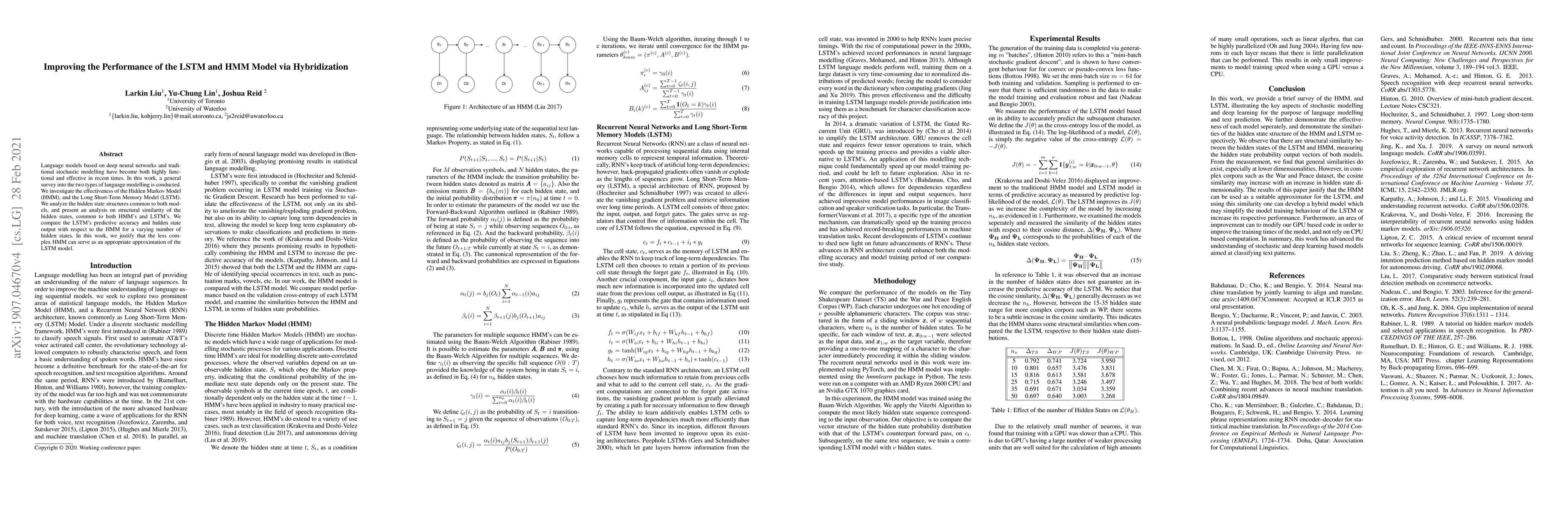 Researchers investigated the effectiveness of Hidden Markov Models (HMMs) and Long Short-Term Memory Models (LSTMs) for language modeling, finding that a simpler HMM can approximate an LSTM's performance with fewer hidden states.