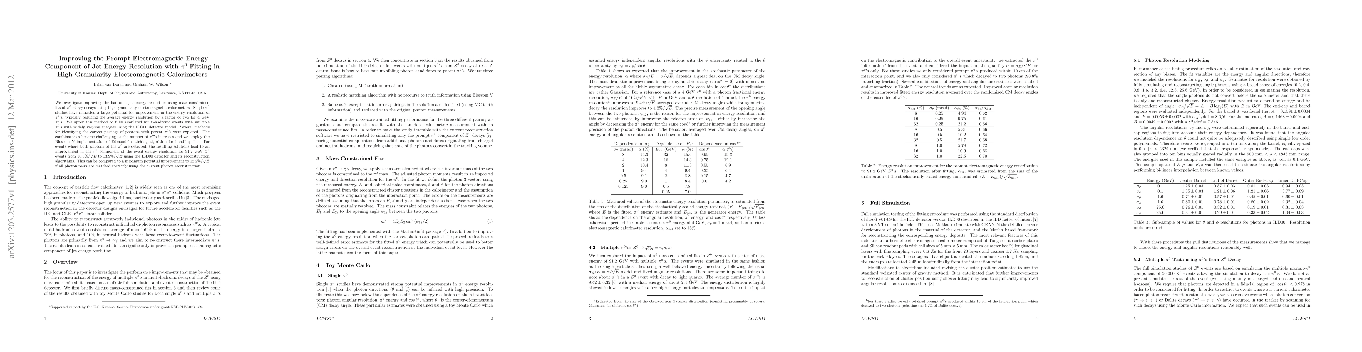 This paper explores enhancing the energy resolution of hadronic jets by applying mass-constrained fits of pi0 decays in high granularity electromagnetic calorimeters, achieving a reduction in pi0 energy resolution by a factor of two for 4 GeV pi0s. The study uses the ILD00 detector model to simulate multi-hadronic events, employing the Blossom V algorithm to match photons to pi0s, resulting in an improved pi0 component resolution for 91.2 GeV Z0 events.