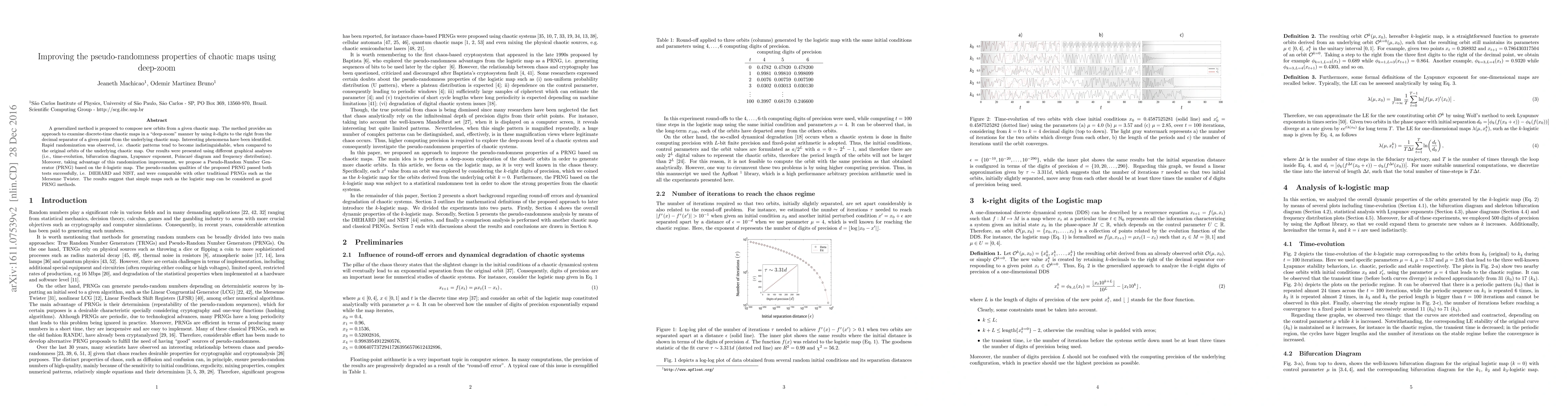 This paper proposes a method to enhance the pseudo-randomness of chaotic maps through "deep-zoom" analysis, revealing rapid randomization and indistinguishable chaotic patterns. The study also introduces a PRNG based on the $k$-logistic map, which passed rigorous tests like DIEHARD and NIST, demonstrating its effectiveness comparable to traditional PRNGs.