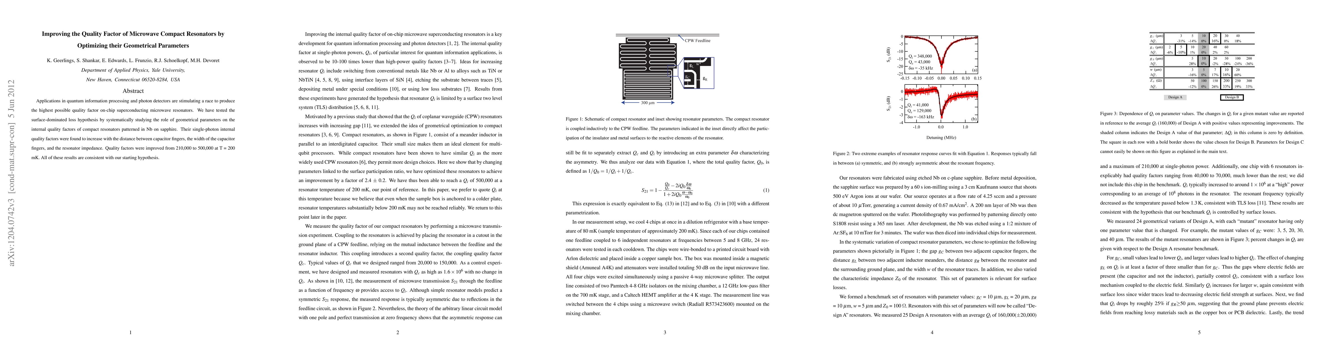 This research optimized geometrical parameters of compact superconducting microwave resonators on sapphire to enhance their quality factors for quantum applications. Findings suggest increasing distance between capacitor fingers, finger width, and resonator impedance improves quality factors from 210,000 to 500,000 at 200 mK, supporting the surface-loss hypothesis.