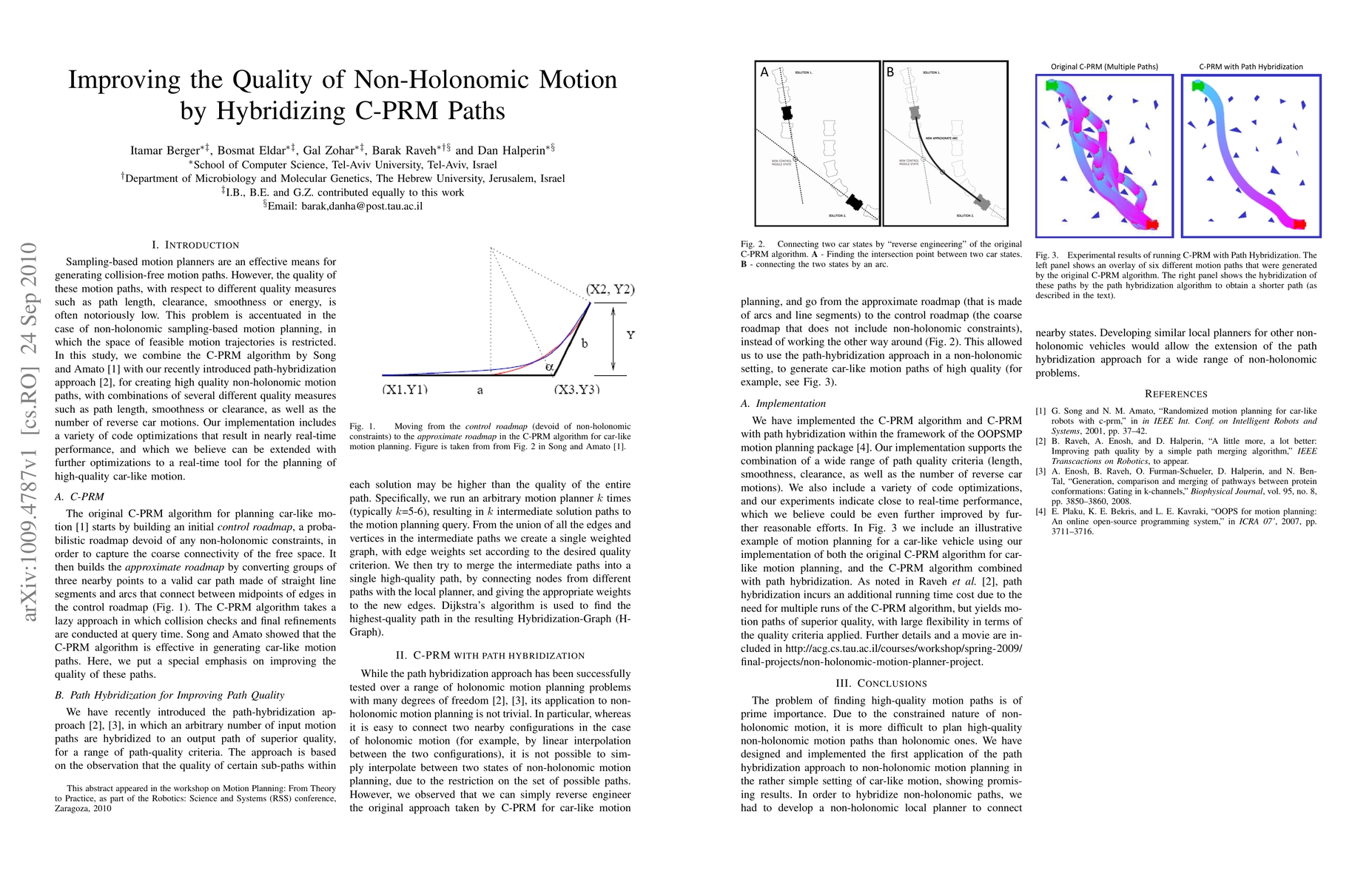 Sampling-based motion planners are an effective means for generating collision-free motion paths. However, the quality of these motion paths, with respect to different quality measures such as path length, clearance, smoothness or energy, is often notoriously low. This problem is accentuated in the case of non-holonomic sampling-based motion planning, in which the space of feasible motion trajectories is restricted. In this study, we combine the C-PRM algorithm by Song and Amato with our recently introduced path-hybridization approach, for creating high quality non-holonomic motion paths, with combinations of several different quality measures such as path length, smoothness or clearance, as well as the number of reverse car motions. Our implementation includes a variety of code optimizations that result in nearly real-time performance, and which we believe can be extended with further optimizations to a real-time tool for the planning of high-quality car-like motion.