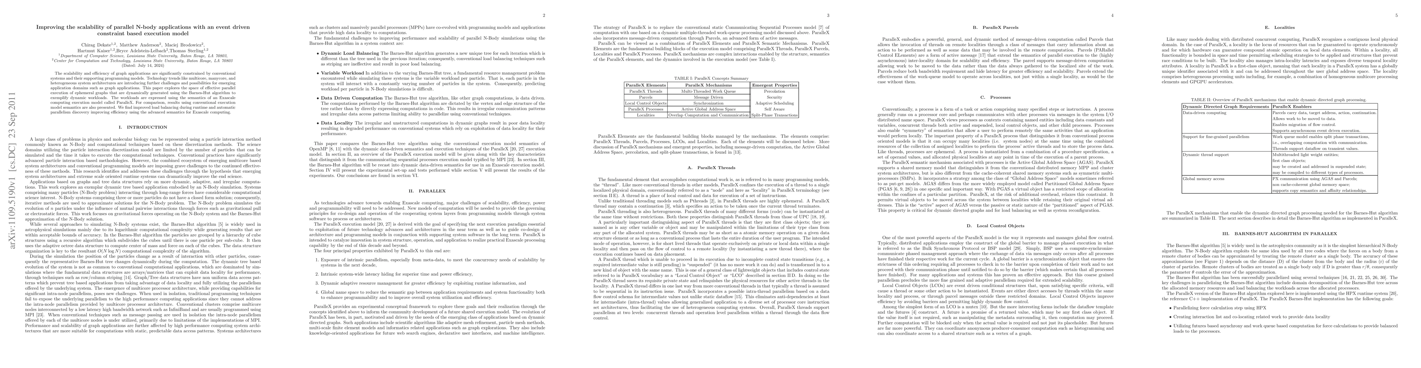 This paper investigates the scalability of parallel N-body applications using an event-driven constraint-based execution model, demonstrating improved load balancing and efficiency compared to conventional models, particularly for dynamically generated graphs using the Barnes-Hut algorithm within the ParalleX execution model.