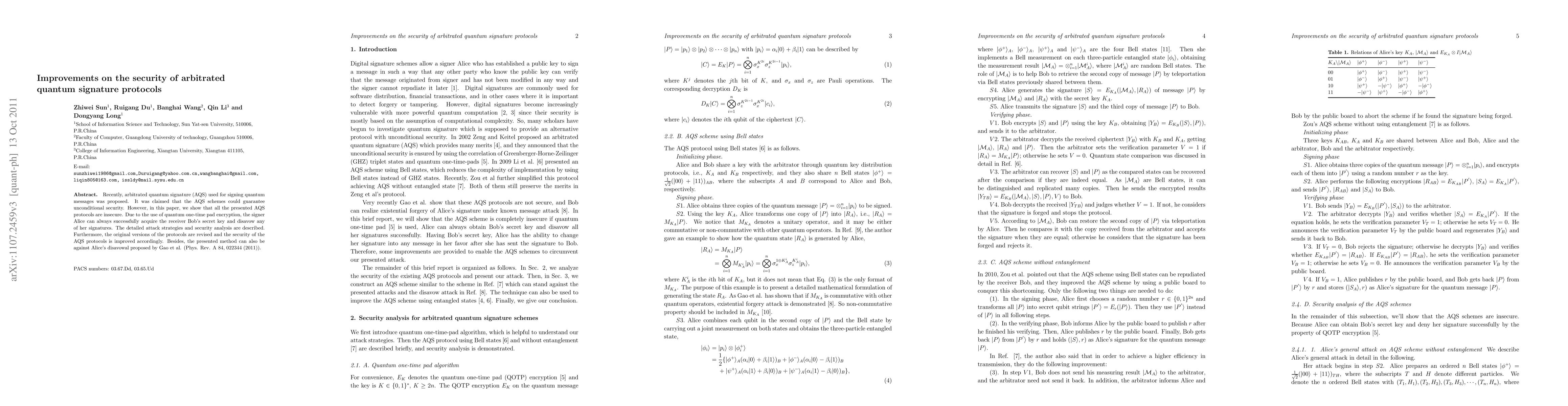 This paper identifies vulnerabilities in arbitrated quantum signature (AQS) protocols, demonstrating that they can be compromised using quantum one-time pad encryption, allowing the signer to acquire secret keys and disavow signatures. The authors revise the protocols to enhance security and propose a new method to counter Alice's disavowal attacks.