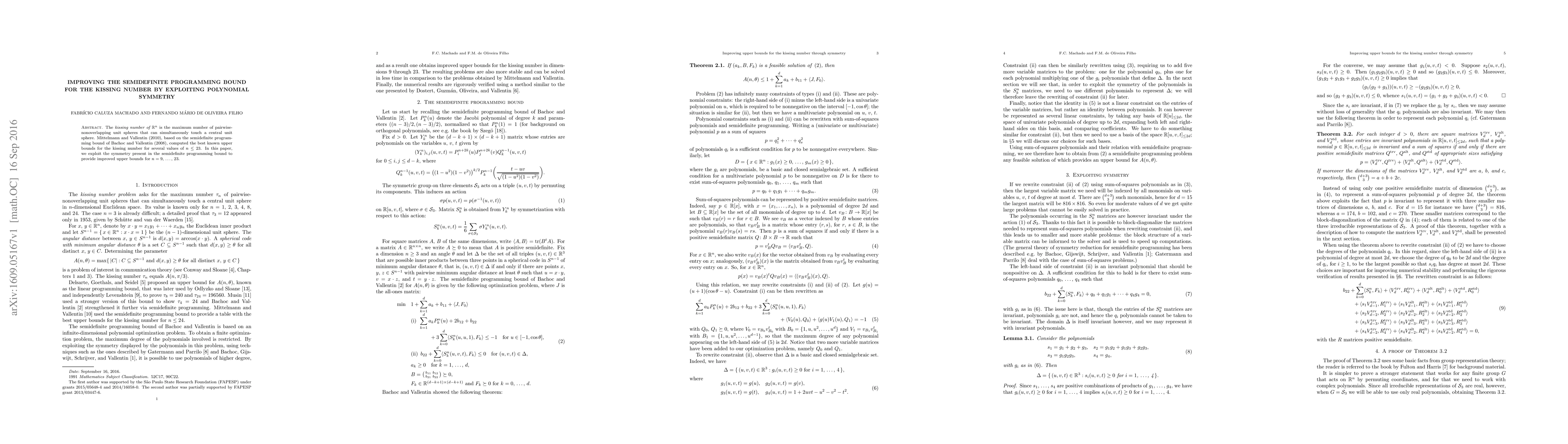 This paper improves the semidefinite programming bound for the kissing number in dimensions $n = 9$ to $23$ by leveraging the inherent symmetry within the bound, thereby providing better upper limits for these dimensions.