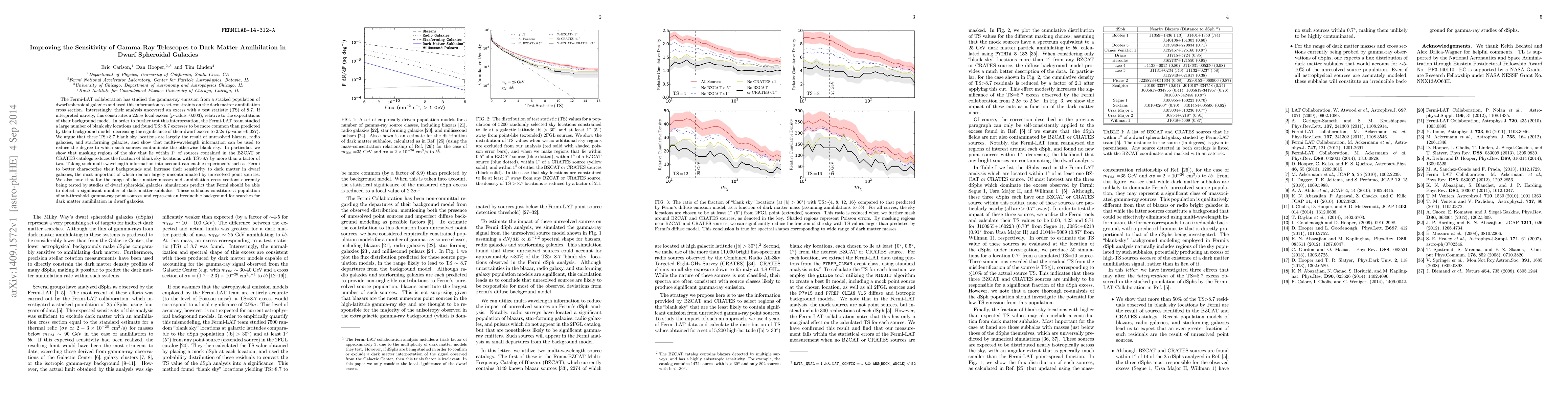 The Fermi-LAT collaboration has studied the gamma-ray emission from a stacked population of dwarf spheroidal galaxies and used this information to set constraints on the dark matter annihilation cross section. Interestingly, their analysis uncovered an excess with a test statistic (TS) of 8.7. If interpreted naively, this constitutes a 2.95 sigma local excess (p-value=0.003), relative to the expectations of their background model. In order to further test this interpretation, the Fermi-LAT team studied a large number of blank sky locations and found TS>8.7 excesses to be more common than predicted by their background model, decreasing the significance of their dwarf excess to 2.2 sigma (p-value=0.027). We argue that these TS>8.7 blank sky locations are largely the result of unresolved blazars, radio galaxies, and starforming galaxies, and show that multi-wavelength information can be used to reduce the degree to which such sources contaminate the otherwise blank sky. In particular, we show that masking regions of the sky that lie within 1 degree of sources contained in the BZCAT or CRATES catalogs reduces the fraction of blank sky locations with TS>8.7 by more than a factor of two. Taking such multi-wavelength information into account can enable experiments such as Fermi to better characterize their backgrounds and increase their sensitivity to dark matter in dwarf galaxies, the most important of which remain largely uncontaminated by unresolved point sources. We also note that for the range of dark matter masses and annihilation cross sections currently being tested by studies of dwarf spheroidal galaxies, simulations predict that Fermi should be able to detect a significant number of dark matter subhalos. These subhalos constitute a population of sub-threshold gamma-ray point sources and represent an irreducible background for searches for dark matter annihilation in dwarf galaxies.