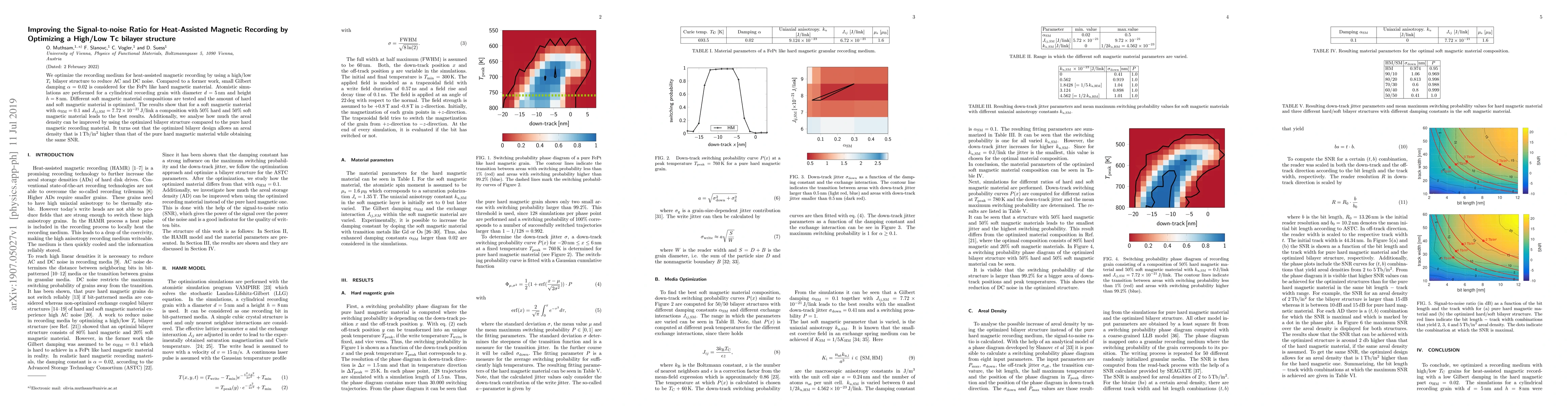 We optimize the recording medium for heat-assisted magnetic recording by using a high/low $T_{\mathrm{c}}$ bilayer structure to reduce AC and DC noise. Compared to a former work, small Gilbert damping $\alpha=0.02$ is considered for the FePt like hard magnetic material. Atomistic simulations are performed for a cylindrical recording grain with diameter $d=5\,$nm and height $h=8\,$nm. Different soft magnetic material compositions are tested and the amount of hard and soft magnetic material is optimized. The results show that for a soft magnetic material with $\alpha_{\mathrm{SM}}=0.1$ and $J_{ij,\mathrm{SM}}=7.72\times 10^{-21}\,$J/link a composition with $50\%$ hard and $50\%$ soft magnetic material leads to the best results. Additionally, we analyse how much the areal density can be improved by using the optimized bilayer structure compared to the pure hard magnetic recording material. It turns out that the optimized bilayer design allows an areal density that is $1\,$Tb/in$^2$ higher than that of the pure hard magnetic material while obtaining the same SNR.