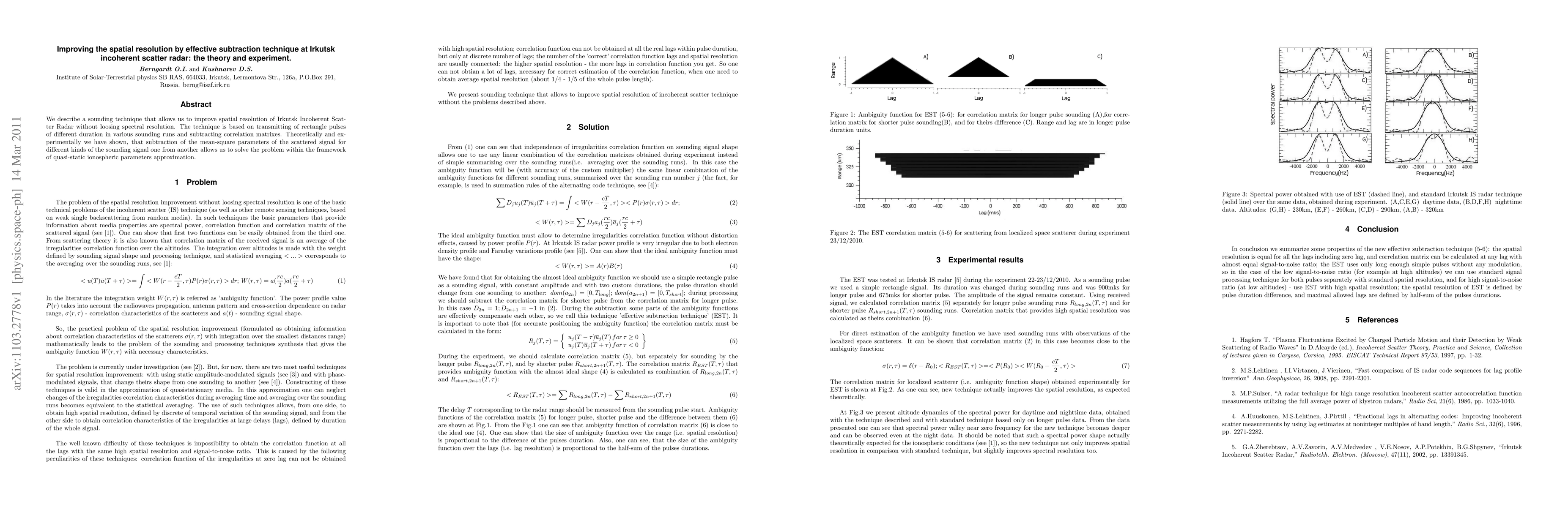 This paper presents a novel sounding technique to enhance the spatial resolution of the Irkutsk Incoherent Scatter Radar while maintaining spectral resolution. By transmitting rectangle pulses of varying durations and subtracting correlation matrices, the method effectively improves resolution under quasi-static ionospheric conditions, as demonstrated both theoretically and experimentally.