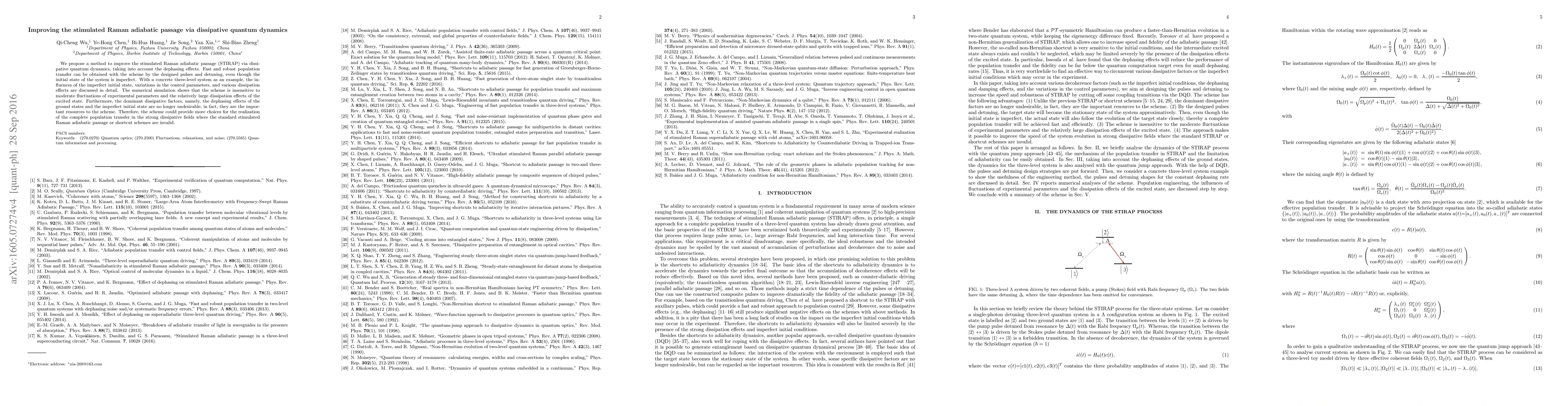 This paper proposes an enhanced method for stimulated Raman adiabatic passage (STIRAP) using dissipative quantum dynamics, which effectively manages dephasing effects. The scheme achieves robust population transfer even with imperfect initial states, and numerical simulations show it is resilient to experimental parameter fluctuations and significant excited state dissipation.