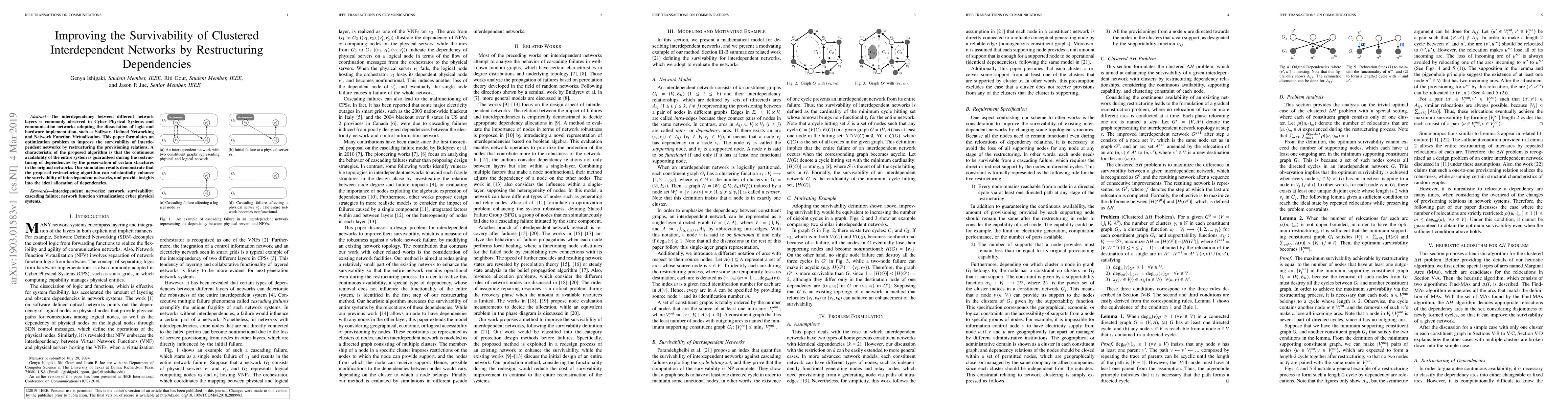 The interdependency between different network layers is commonly observed in Cyber Physical Systems and communication networks adopting the dissociation of logic and hardware implementation, such as Software Defined Networking and Network Function Virtualization. This paper formulates an optimization problem to improve the survivability of interdependent networks by restructuring the provisioning relations. A characteristic of the proposed algorithm is that the continuous availability of the entire system is guaranteed during the restructuring of dependencies by the preservation of certain structures in the original networks. Our simulation results demonstrate that the proposed restructuring algorithm can substantially enhance the survivability of interdependent networks, and provide insights into the ideal allocation of dependencies.