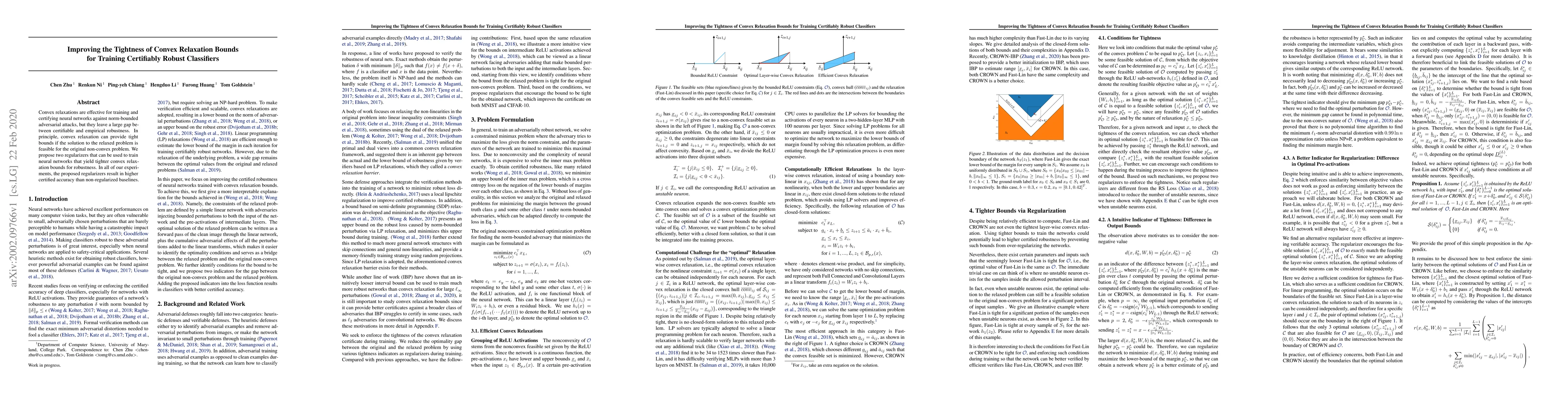New regularizers improve neural network robustness by reducing the gap between certified and empirical accuracy, yielding tighter convex relaxation bounds for adversarial attacks.