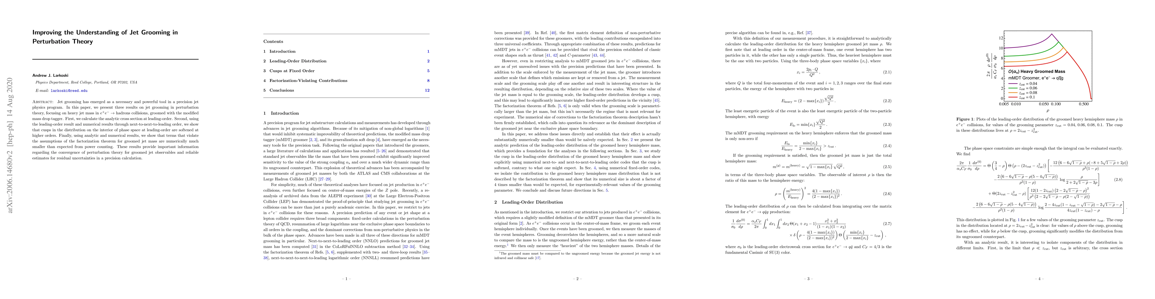 This paper improves understanding of jet grooming in perturbation theory, showing that higher-order corrections soften cusps and reduce residual uncertainties.