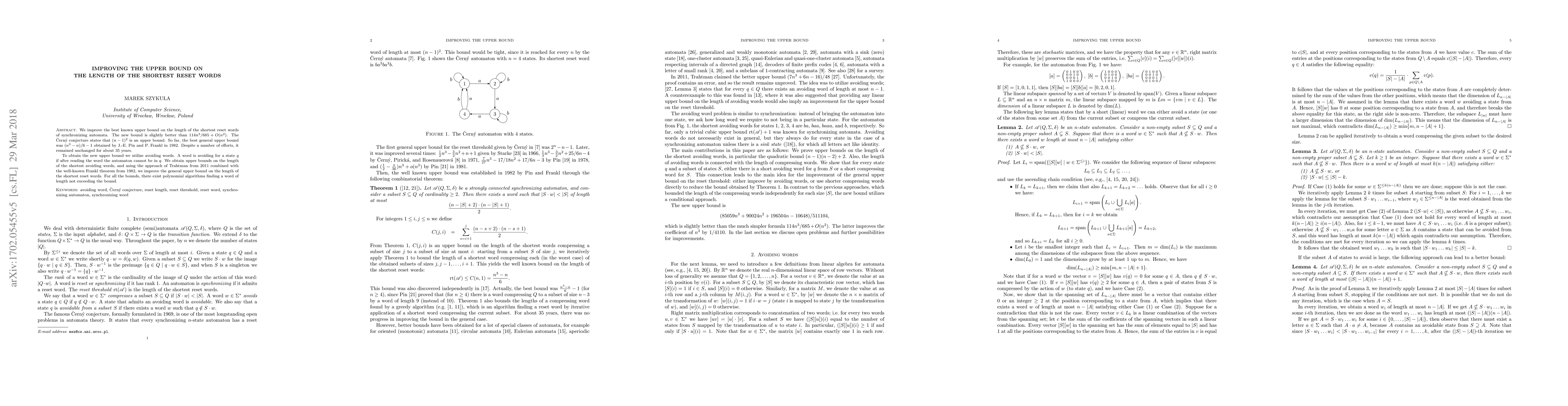 This paper improves the best-known upper bound on the length of the shortest reset words for synchronizing automata, achieving a bound slightly better than $114n^3/685 + O(n^2)$, surpassing the previous best bound of $(n^3-n)/6-1$ set in 1982. The authors utilize avoiding words and advanced combinatorial techniques to make this improvement.