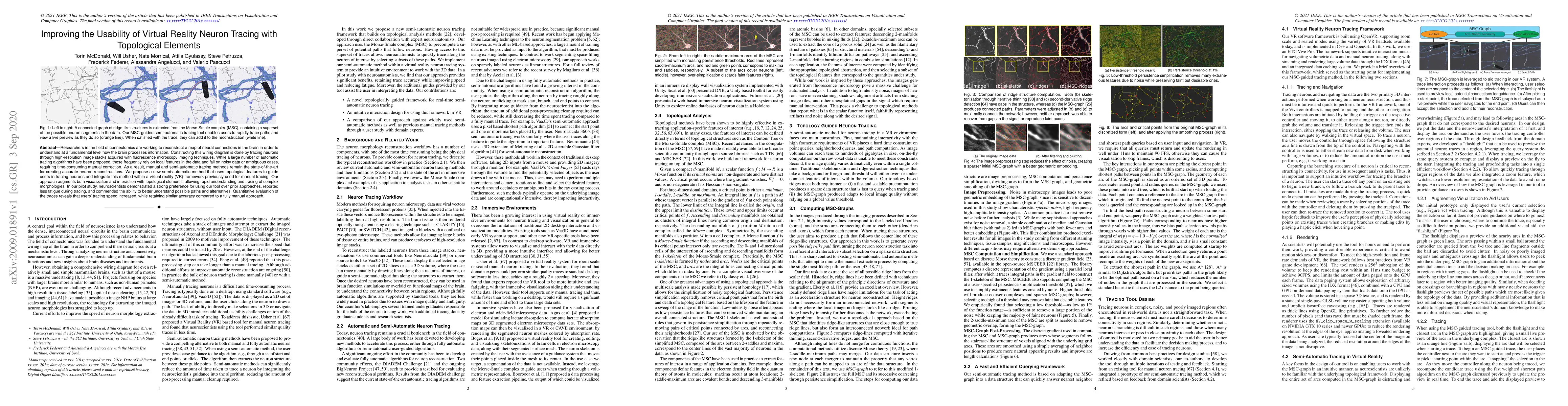 Researchers developed a semi-automatic VR tool for neuron tracing that employs topological elements to guide users, significantly improving usability and tracing speed while maintaining accuracy. Neuroscientists preferred this method over previous approaches, reporting reduced fatigue and better comprehension of complex neural pathways.