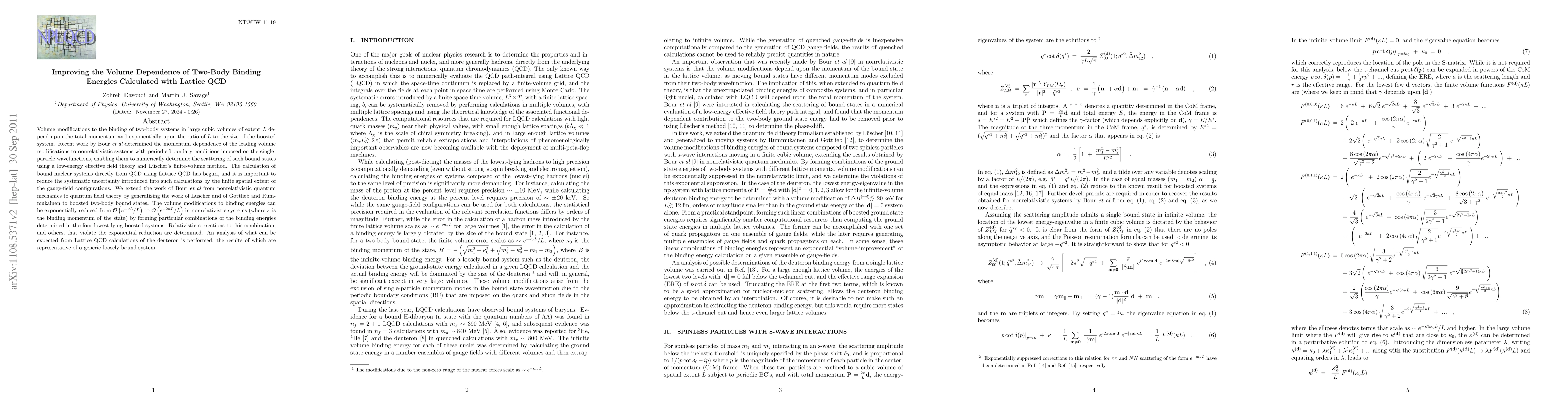 Volume modifications to the binding of two-body systems in large cubic volumes of extent L depend upon the total momentum and exponentially upon the ratio of L to the size of the boosted system. Recent work by Bour et al determined the momentum dependence of the leading volume modifications to nonrelativistic systems with periodic boundary conditions imposed on the single-particle wavefunctions, enabling them to numerically determine the scattering of such bound states using a low-energy effective field theory and Luscher's finite-volume method. The calculation of bound nuclear systems directly from QCD using Lattice QCD has begun, and it is important to reduce the systematic uncertainty introduced into such calculations by the finite spatial extent of the gauge-field configurations. We extend the work of Bour et al from nonrelativistic quantum mechanics to quantum field theory by generalizing the work of Luscher and of Gottlieb and Rummukainen to boosted two-body bound states. The volume modifications to binding energies can be exponentially reduced from ~ e^{-kappa L}/L to ~ e^{-2 kappa L}/L in nonrelativistic systems (where kappa is the binding momentum of the state) by forming particular combinations of the binding energies determined in the four lowest-lying boosted systems. Relativistic corrections to this combination, and others, that violate the exponential reduction are determined. An analysis of what can be expected from Lattice QCD calculations of the deuteron is performed, the results of which are representative of a generic loosely bound system.