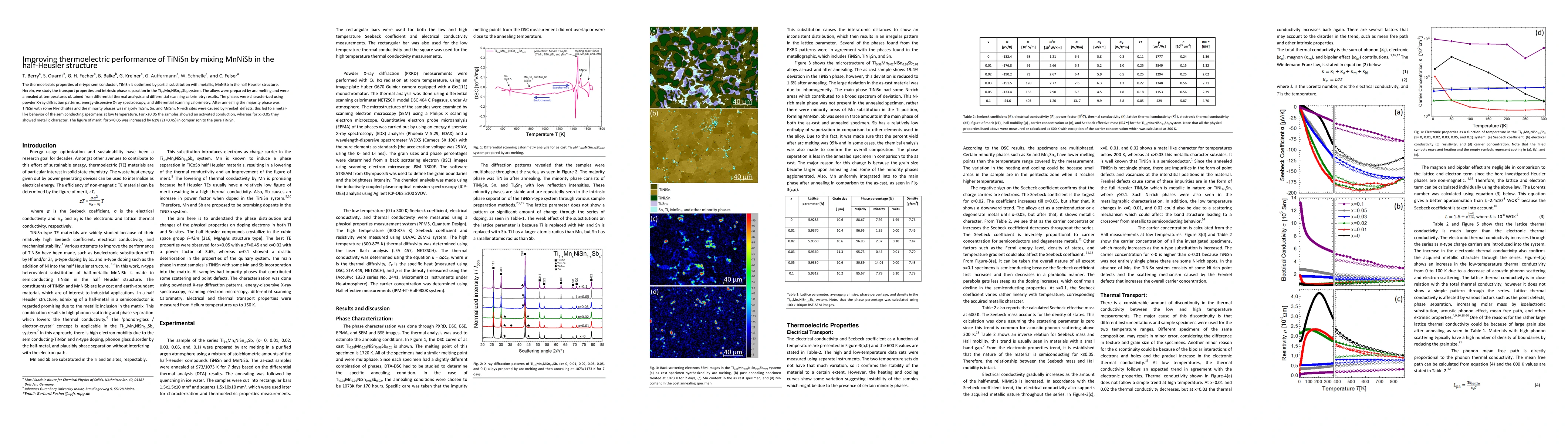 Researchers optimized thermoelectric performance of TiNiSn by mixing MnNiSb, increasing figure of merit by 61% with a ZT value of 0.45.