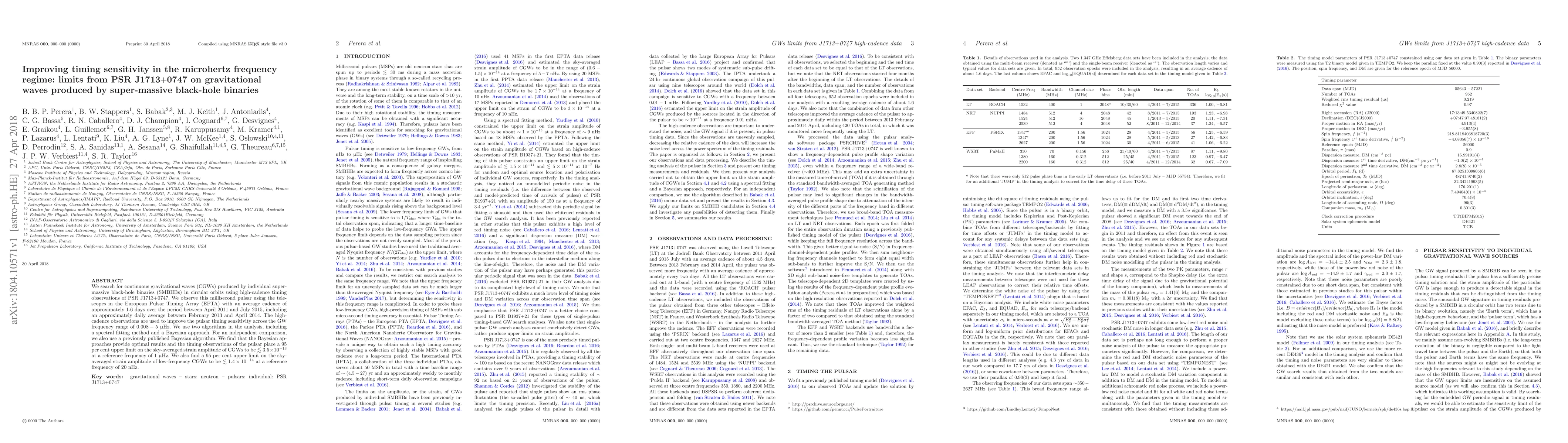 This paper investigates continuous gravitational waves from super-massive black-hole binaries using high-cadence timing observations of the pulsar PSR J1713+0747. The study sets stringent upper limits on the strain amplitude of these waves, achieving a 95% upper limit of $\lesssim3.5\times10^{-13}$ at 1 μHz and $\lesssim1.4\times10^{-14}$ at 20 nHz.
