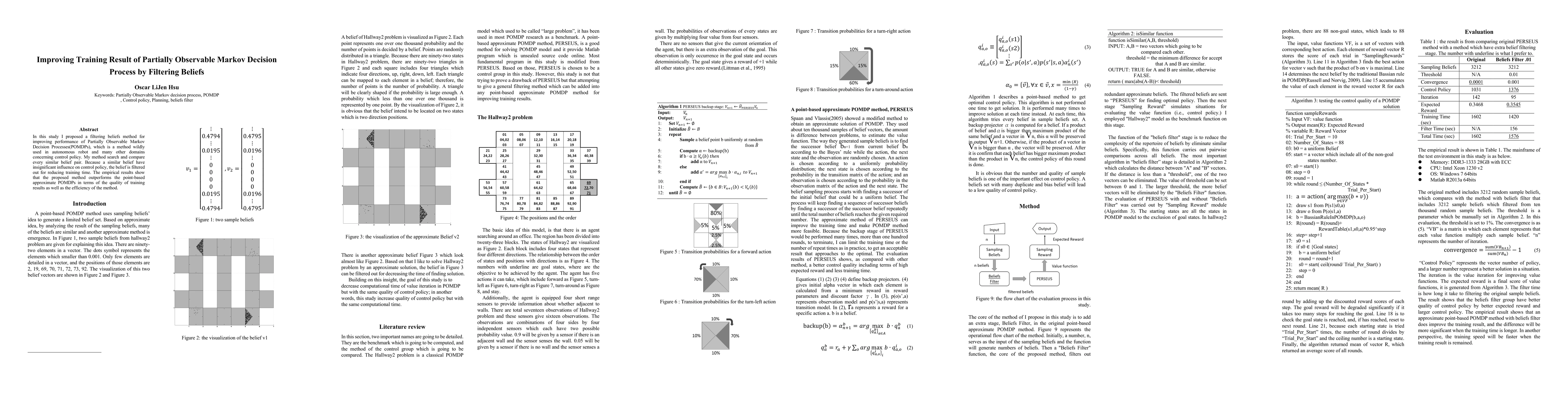 A new method is proposed to improve training results in Partially Observable Markov Decision Processes (POMDPs) by filtering out insignificant beliefs, reducing training time while maintaining quality of results.