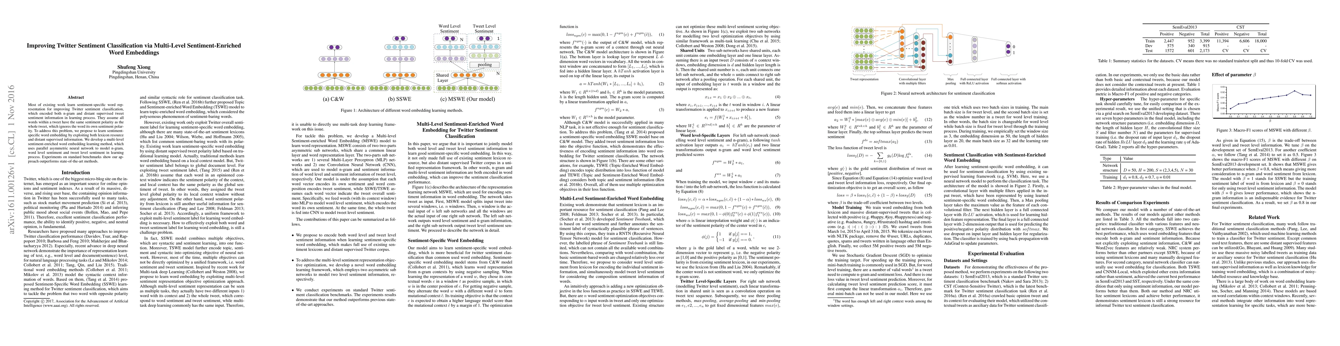 This paper proposes a multi-level sentiment-enriched word embedding learning method to improve Twitter sentiment classification by considering word-level sentiment polarity. The method uses a parallel asymmetric neural network to model n-gram, word-level, and tweet-level sentiment, outperforming existing state-of-the-art methods on standard benchmarks.