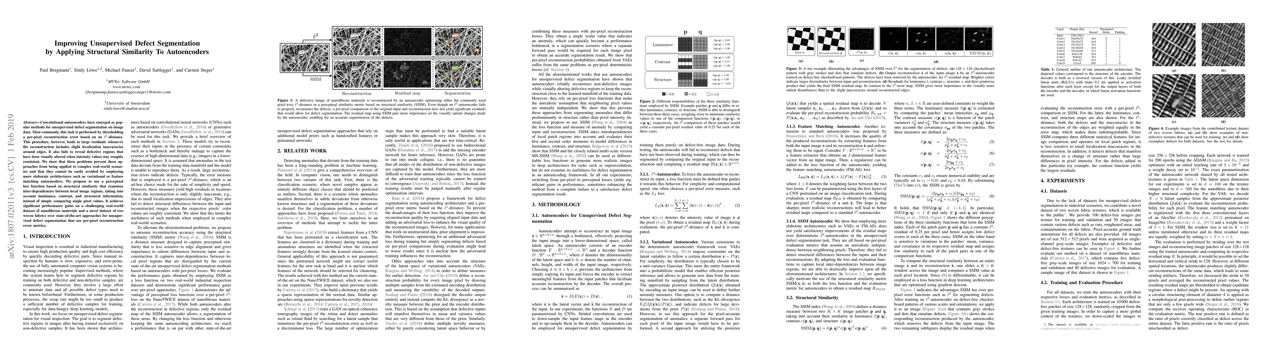 This paper proposes using a structural similarity-based perceptual loss function in convolutional autoencoders to improve unsupervised defect segmentation, addressing issues with pixel-wise reconstruction errors and achieving better performance on real-world datasets compared to traditional $\ell^p$ distance methods.