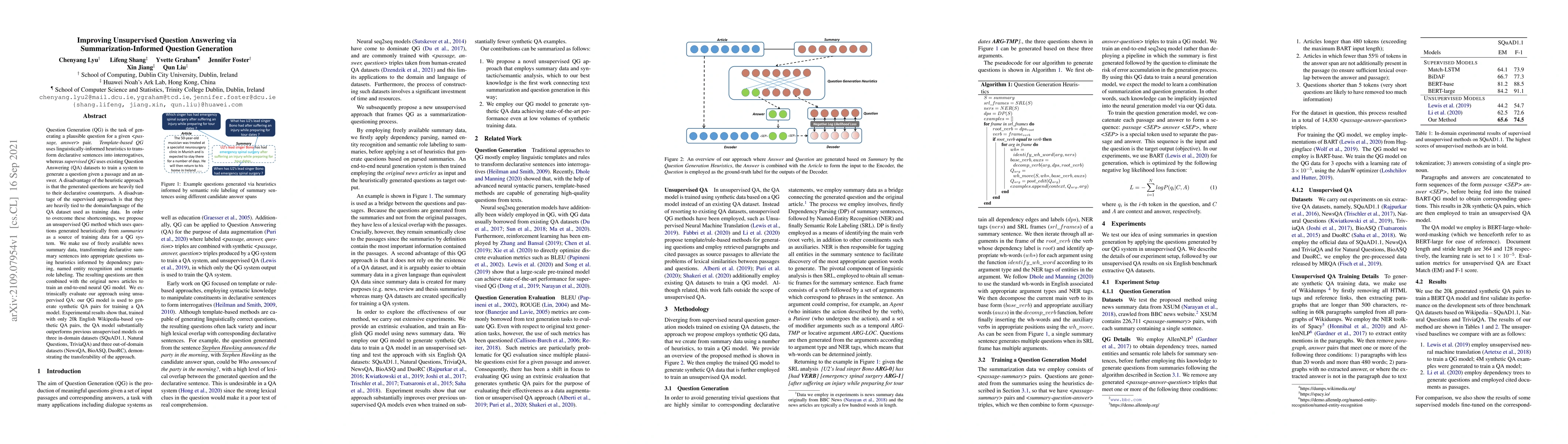 This paper proposes an unsupervised Question Generation (QG) method that leverages summarization-informed heuristics to generate training data from news summaries, which is then used to train a neural QG model. The approach outperforms previous unsupervised models on both in-domain and out-of-domain datasets, demonstrating its effectiveness and transferability.