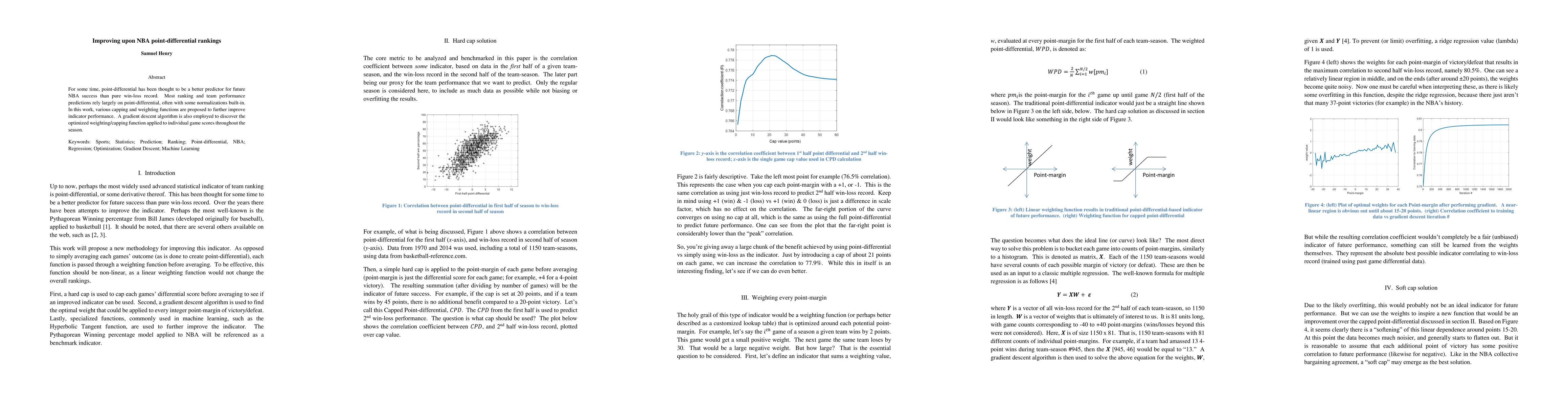 For some time, point-differential has been thought to be a better predictor for future NBA success than pure win-loss record. Most ranking and team performance predictions rely largely on point-differential, often with some normalizations built-in. In this work, various capping and weighting functions are proposed to further improve indicator performance. A gradient descent algorithm is also employed to discover the optimized weighting/capping function applied to individual game scores throughout the season.