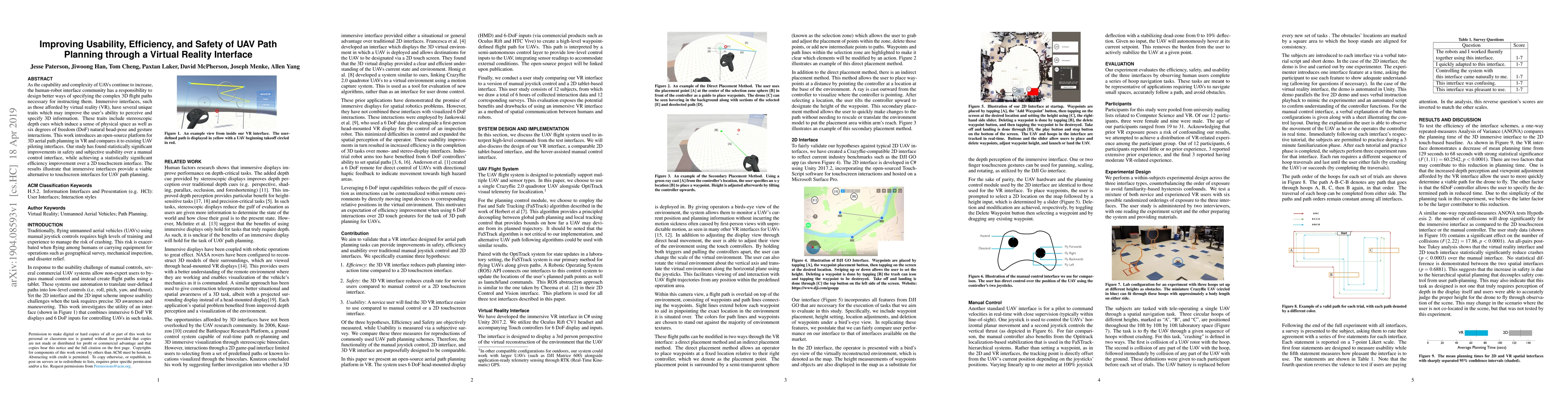 This research develops an open-source VR interface for UAV path planning, demonstrating significant improvements in usability, efficiency, and safety compared to traditional manual and 2D touchscreen controls. The study highlights the benefits of immersive VR for specifying complex 3D flight paths.