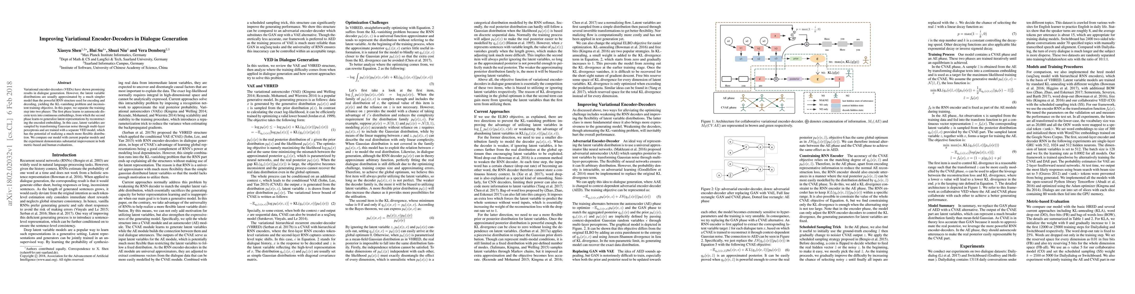 Researchers improved dialogue generation using variational encoder-decoders by separating training into two phases: autoencoding and generalizing latent representations, resulting in substantial improvements over existing models.