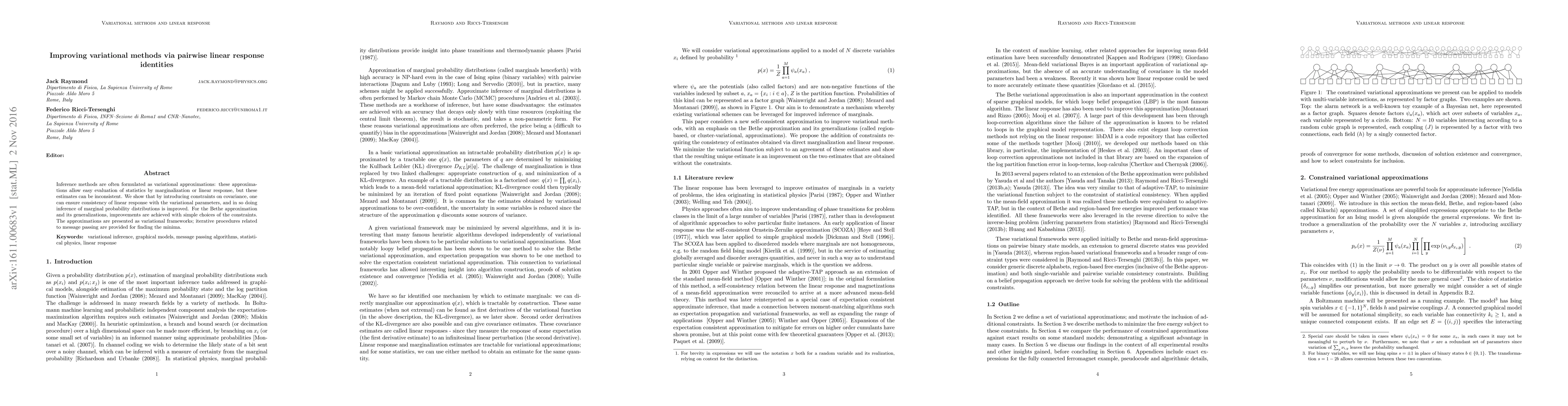 This paper proposes a method to enhance variational inference by enforcing covariance constraints, ensuring consistency in linear response estimates, and improving the accuracy of marginal probability distributions. It applies these improvements to the Bethe approximation and its generalizations using iterative message passing techniques.