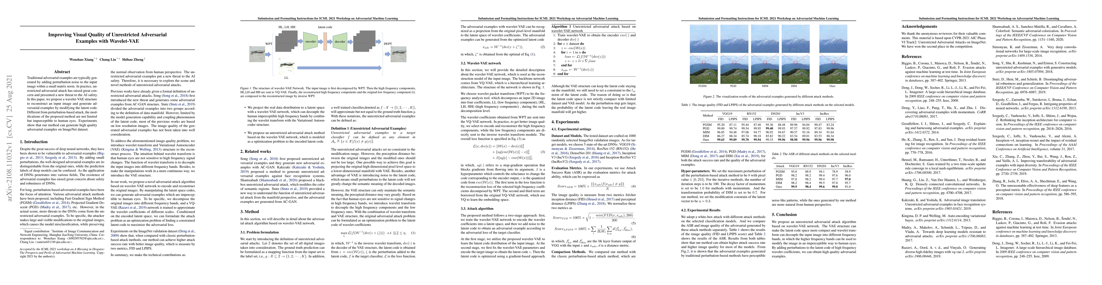 This paper introduces a wavelet-VAE method to generate unrestricted adversarial examples by altering latent codes instead of adding constrained perturbations. The approach produces high-quality, human-imperceptible adversarial examples on ImageNet, enhancing AI safety.