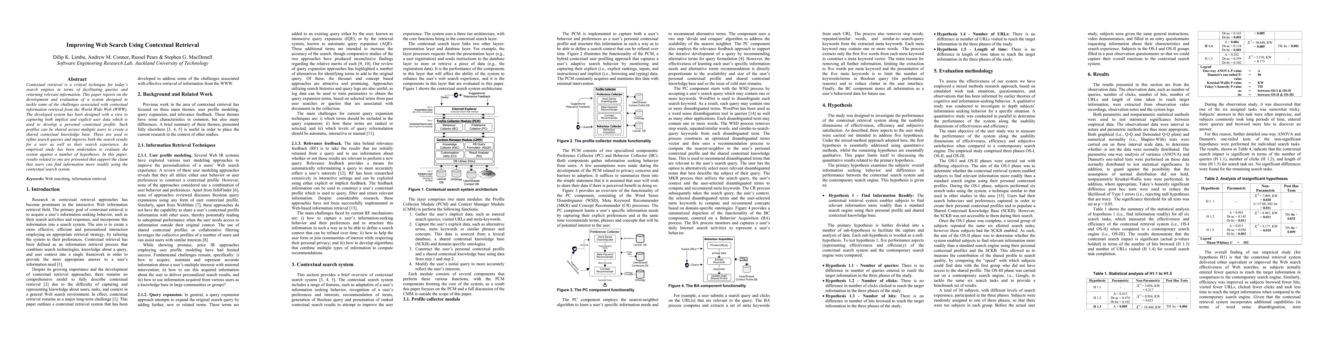 Contextual retrieval is a critical technique for today's search engines in terms of facilitating queries and returning relevant information. This paper reports on the development and evaluation of a system designed to tackle some of the challenges associated with contextual information retrieval from the World Wide Web (WWW). The developed system has been designed with a view to capturing both implicit and explicit user data which is used to develop a personal contextual profile. Such profiles can be shared across multiple users to create a shared contextual knowledge base. These are used to refine search queries and improve both the search results for a user as well as their search experience. An empirical study has been undertaken to evaluate the system against a number of hypotheses. In this paper, results related to one are presented that support the claim that users can find information more readily using the contextual search system.