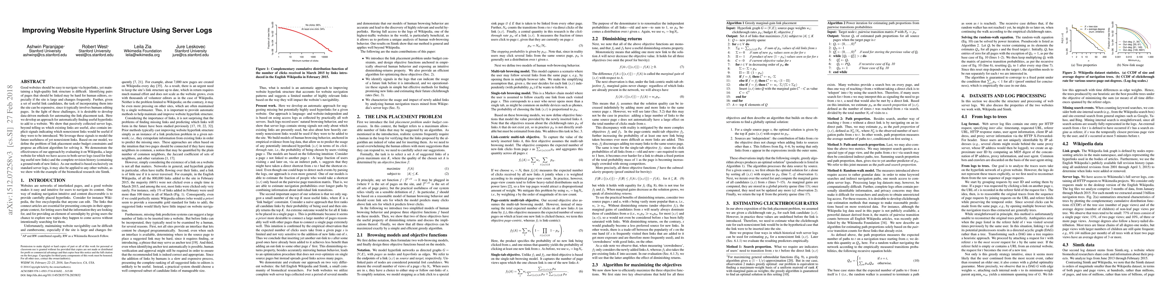 Good websites should be easy to navigate via hyperlinks, yet maintaining a high-quality link structure is difficult. Identifying pairs of pages that should be linked may be hard for human editors, especially if the site is large and changes frequently. Further, given a set of useful link candidates, the task of incorporating them into the site can be expensive, since it typically involves humans editing pages. In the light of these challenges, it is desirable to develop data-driven methods for automating the link placement task. Here we develop an approach for automatically finding useful hyperlinks to add to a website. We show that passively collected server logs, beyond telling us which existing links are useful, also contain implicit signals indicating which nonexistent links would be useful if they were to be introduced. We leverage these signals to model the future usefulness of yet nonexistent links. Based on our model, we define the problem of link placement under budget constraints and propose an efficient algorithm for solving it. We demonstrate the effectiveness of our approach by evaluating it on Wikipedia, a large website for which we have access to both server logs (used for finding useful new links) and the complete revision history (containing a ground truth of new links). As our method is based exclusively on standard server logs, it may also be applied to any other website, as we show with the example of the biomedical research site Simtk.
