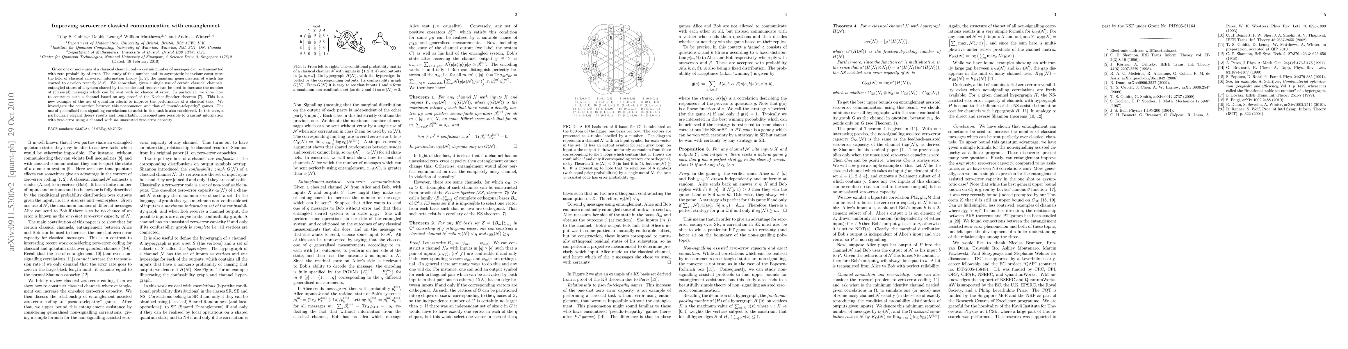 This paper demonstrates that entangled quantum states can enhance zero-error classical communication through classical channels, leveraging the Bell-Kochen-Specker theorem. It shows a connection between this quantum improvement and pseudo-telepathy games, revealing that non-signalling correlations can sometimes enable zero-error transmission even when the channel alone lacks such capacity.