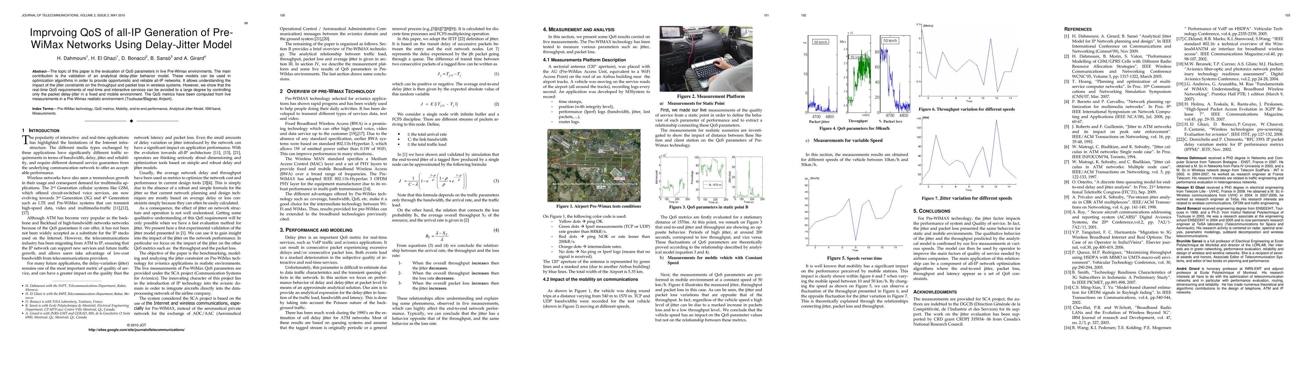 This paper evaluates QoS parameters in live Pre-WiMax networks and validates an analytical delay-jitter model to optimize all-IP networks. The study shows that real-time QoS requirements can be largely met by controlling packet delay-jitter, with metrics derived from measurements at Toulouse/Blagnac Airport.