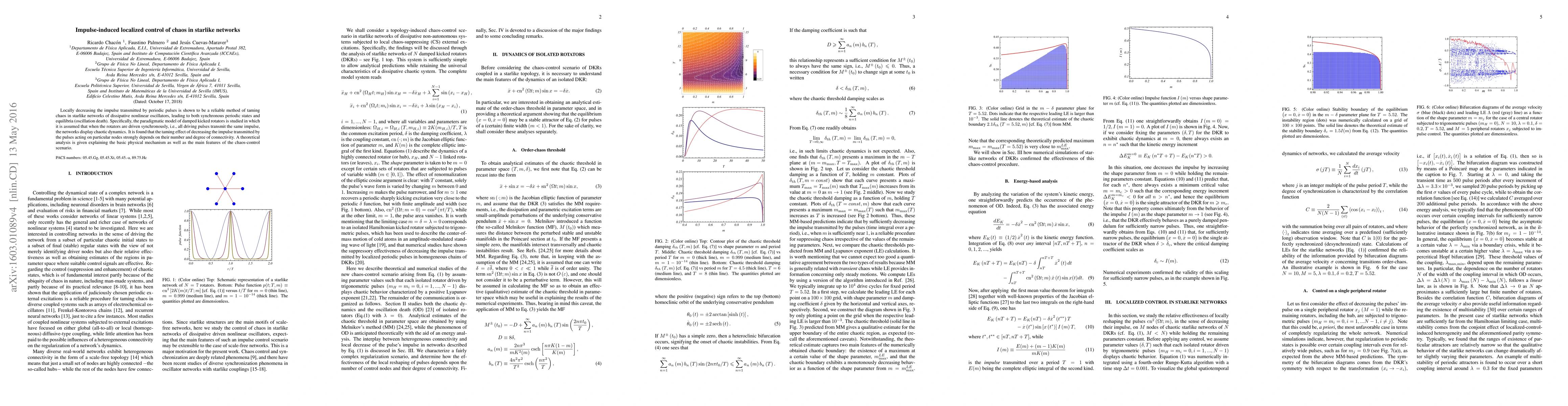 Locally decreasing the impulse transmitted by periodic pulses is shown to be a reliable method of taming chaos in starlike networks of dissipative nonlinear oscillators, leading to both synchronous periodic states and equilibria (oscillation death). Specifically, the paradigmatic model of damped kicked rotators is studied in which it is assumed that when the rotators are driven synchronously, i.e., all driving pulses transmit the same impulse, the networks display chaotic dynamics. It is found that the taming effect of decreasing the impulse transmitted by the pulses acting on particular nodes strongly depends on their number and degree of connectivity. A theoretical analysis is given explaining the basic physical mechanism as well as the main features of the chaos-control scenario.