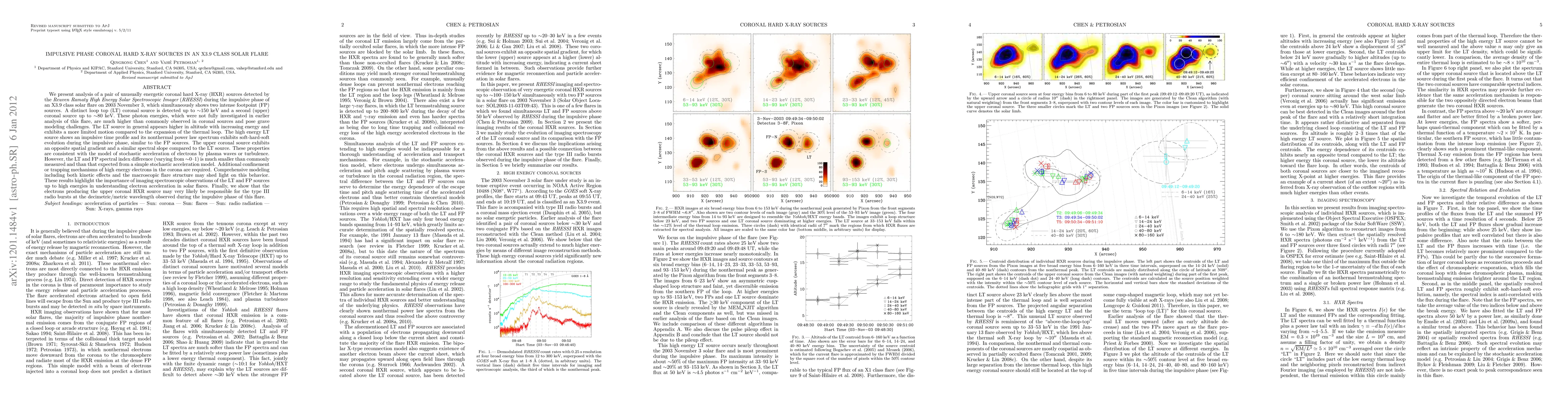 This paper analyzes two unusually energetic coronal hard X-ray sources detected during the impulsive phase of an X3.9 class solar flare, revealing distinct loop top and footpoint sources with photon energies much higher than typical observations. The findings suggest the need for additional mechanisms beyond stochastic acceleration to explain the observed spectral indices and highlight the importance of high-energy imaging spectroscopy for understanding electron acceleration in solar flares.