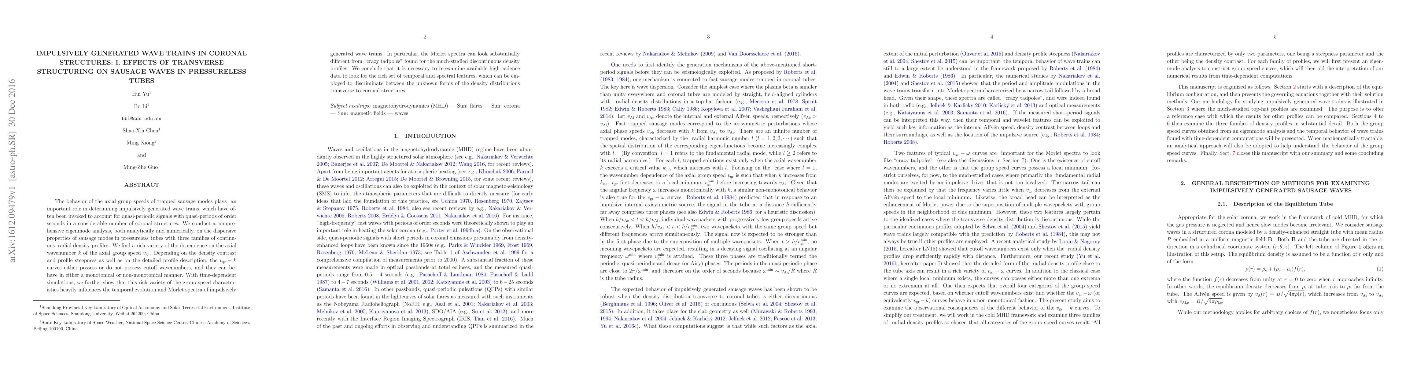 This paper investigates the axial group speeds of sausage modes in pressureless coronal tubes with continuous radial density profiles, revealing diverse $v_{\rm gr}-k$ relationships that significantly affect the temporal evolution and Morlet spectra of impulsively generated wave trains. The study suggests a need to re-evaluate observational data for a variety of temporal and spectral features to better understand the transverse density distributions in coronal structures.